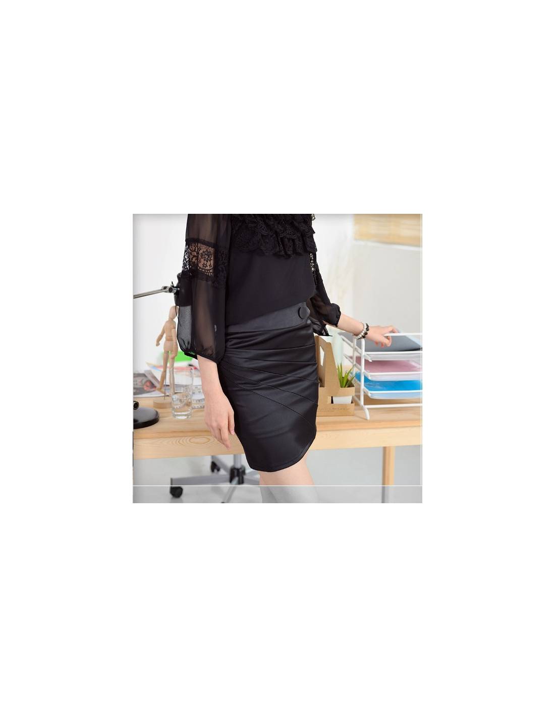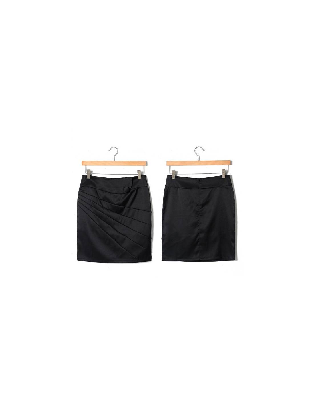 Jolie jupe coupe droite, plissée effet satin avec un bouton sur le devant