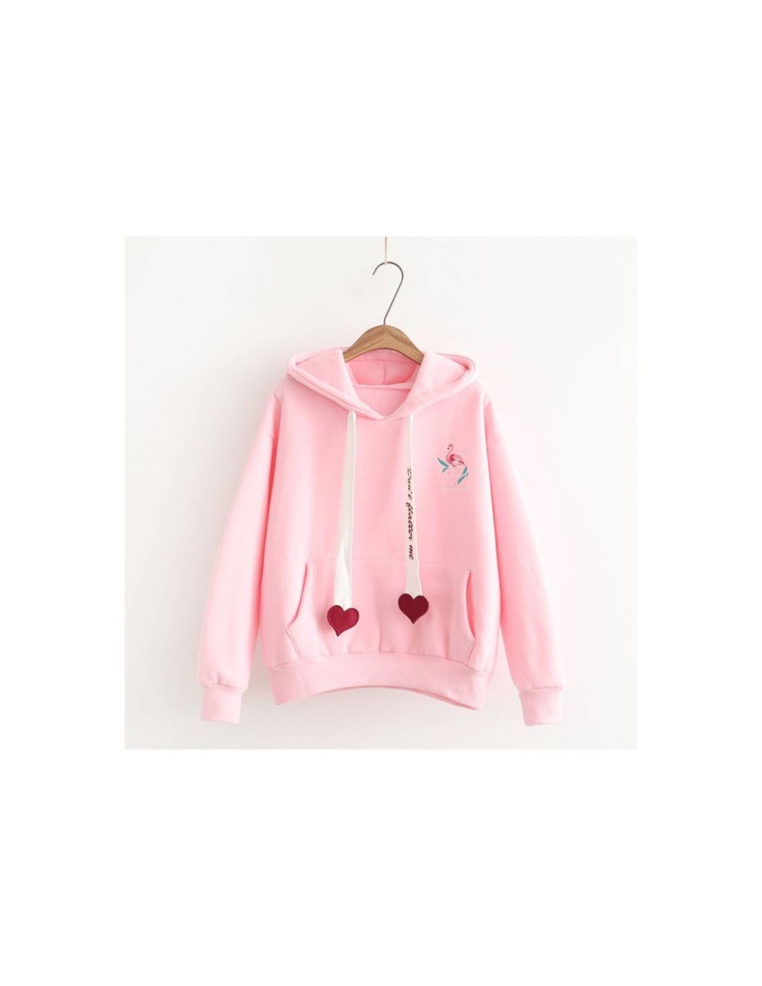Sweat léger Kawaii avec deux coeur et imprimé Flamant Rose