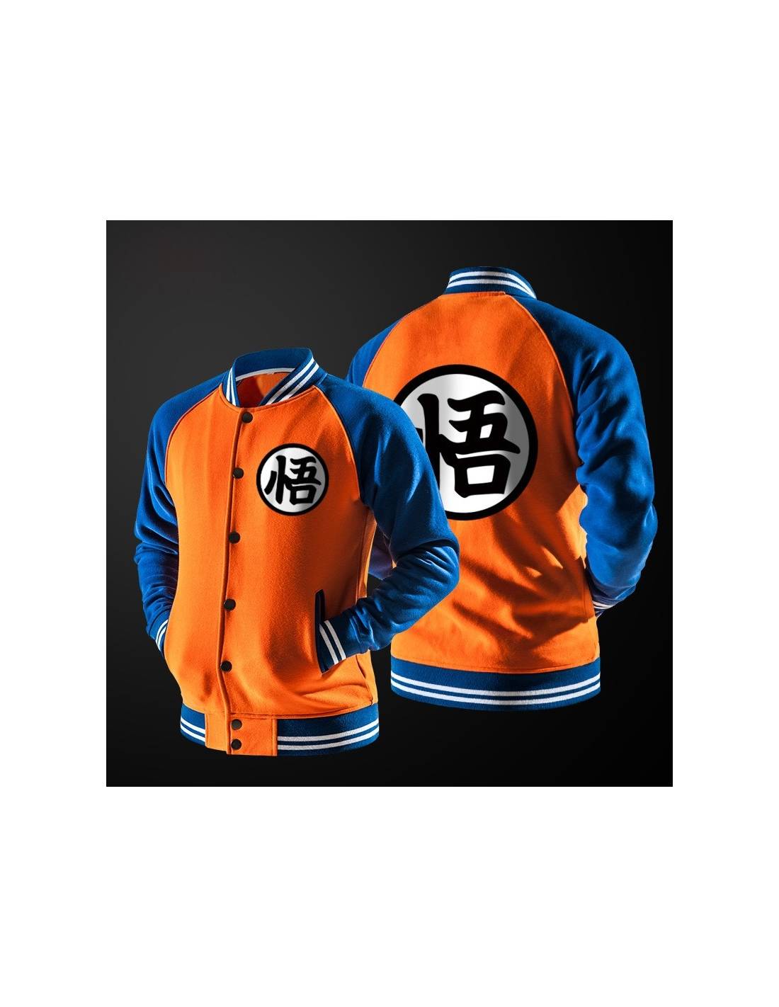 Le symbole du héros charismatique de la série Dragon Ball est imprimé sur le devant de cette veste bicolore.