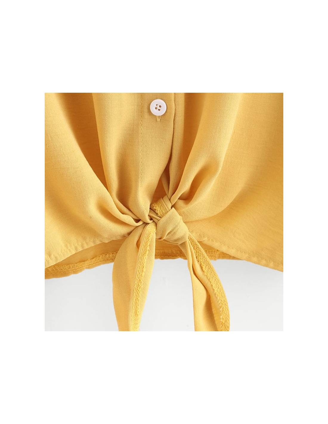 Cette chemise a tout du style coréen avec son imprimé et son noeud permettant d'attacher le vêtement.