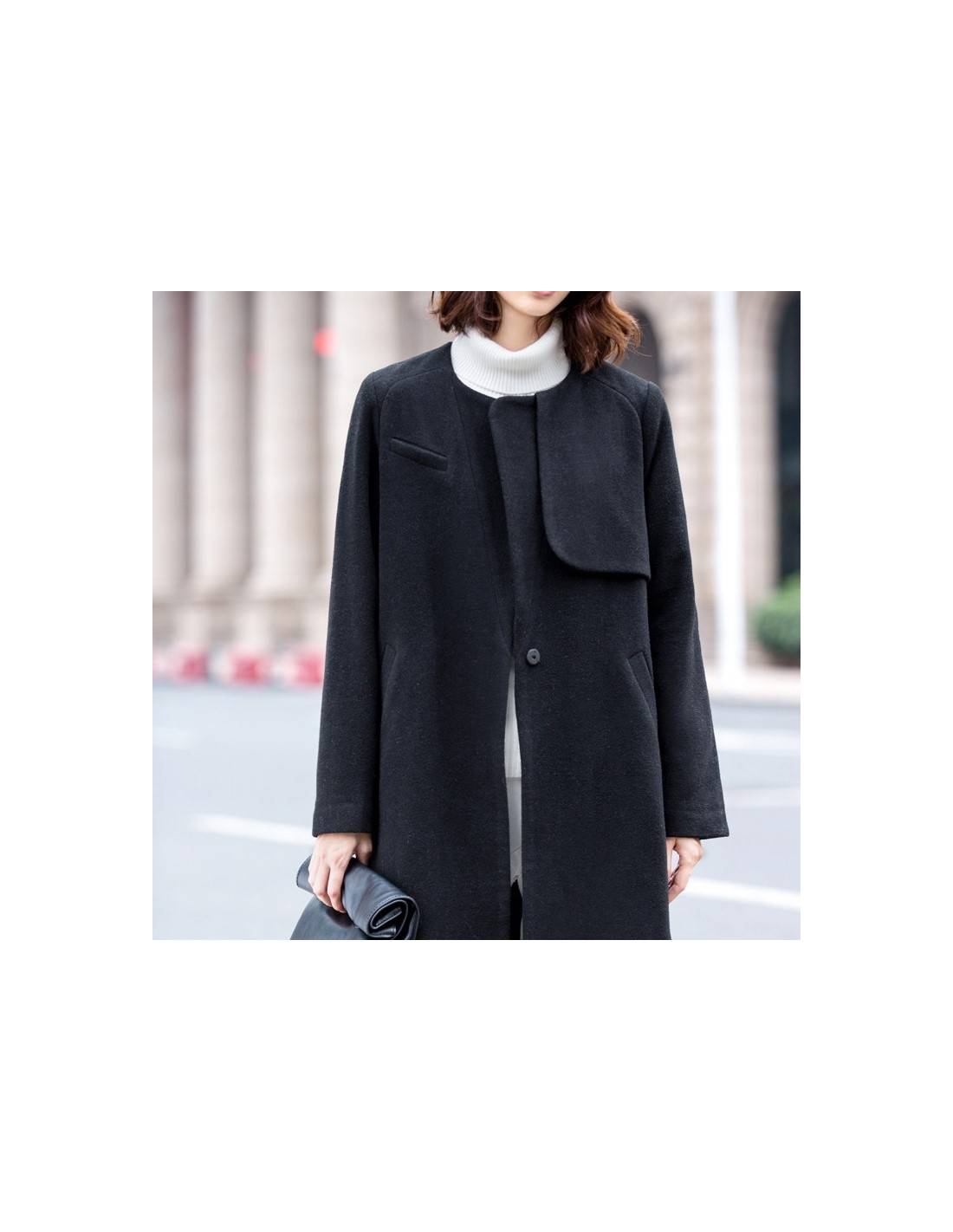 Manteau casual col ras de cou