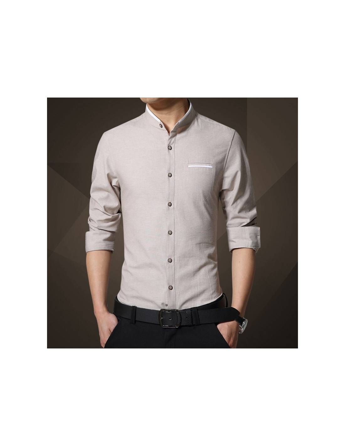 Chemise col mao liseré blanc manches longues