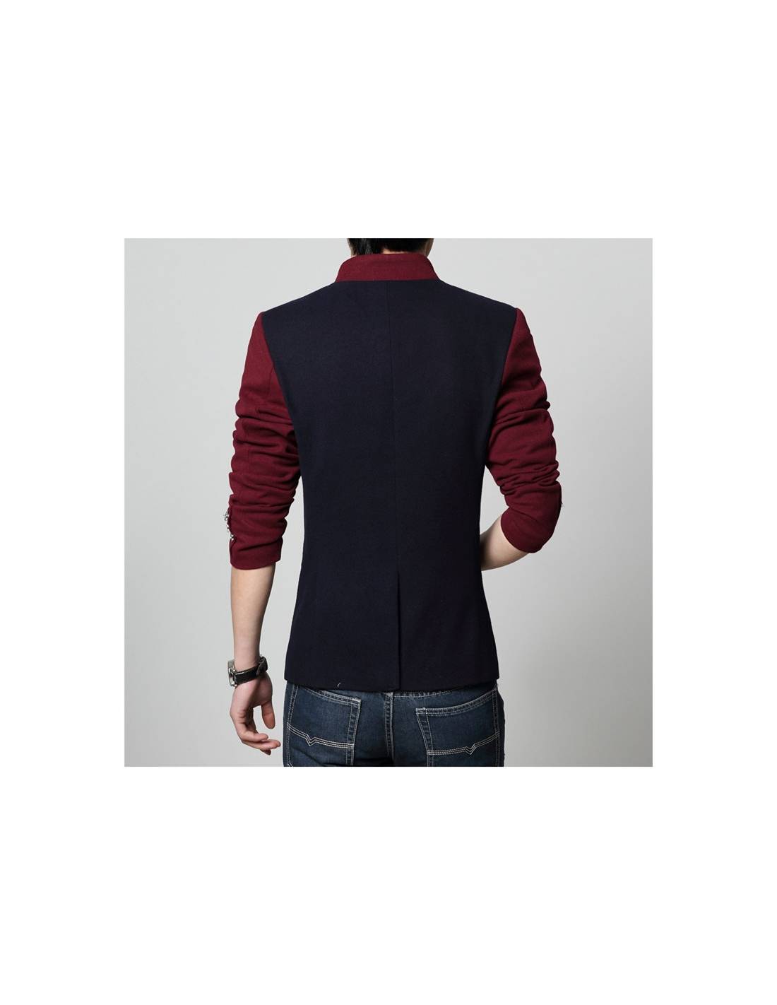 Faites une entrée remarquée avec ce blazer homme Slim Fit Patchwork Rouge.