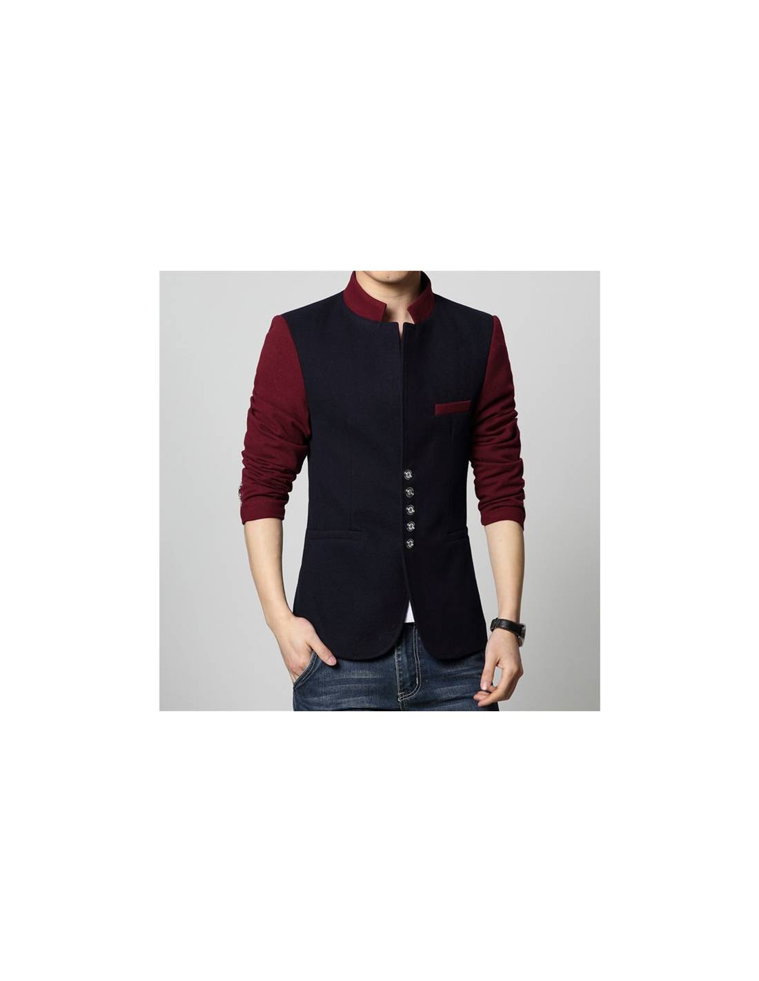 Blazer japonais Col Mao Casual slim fit - noir face 2