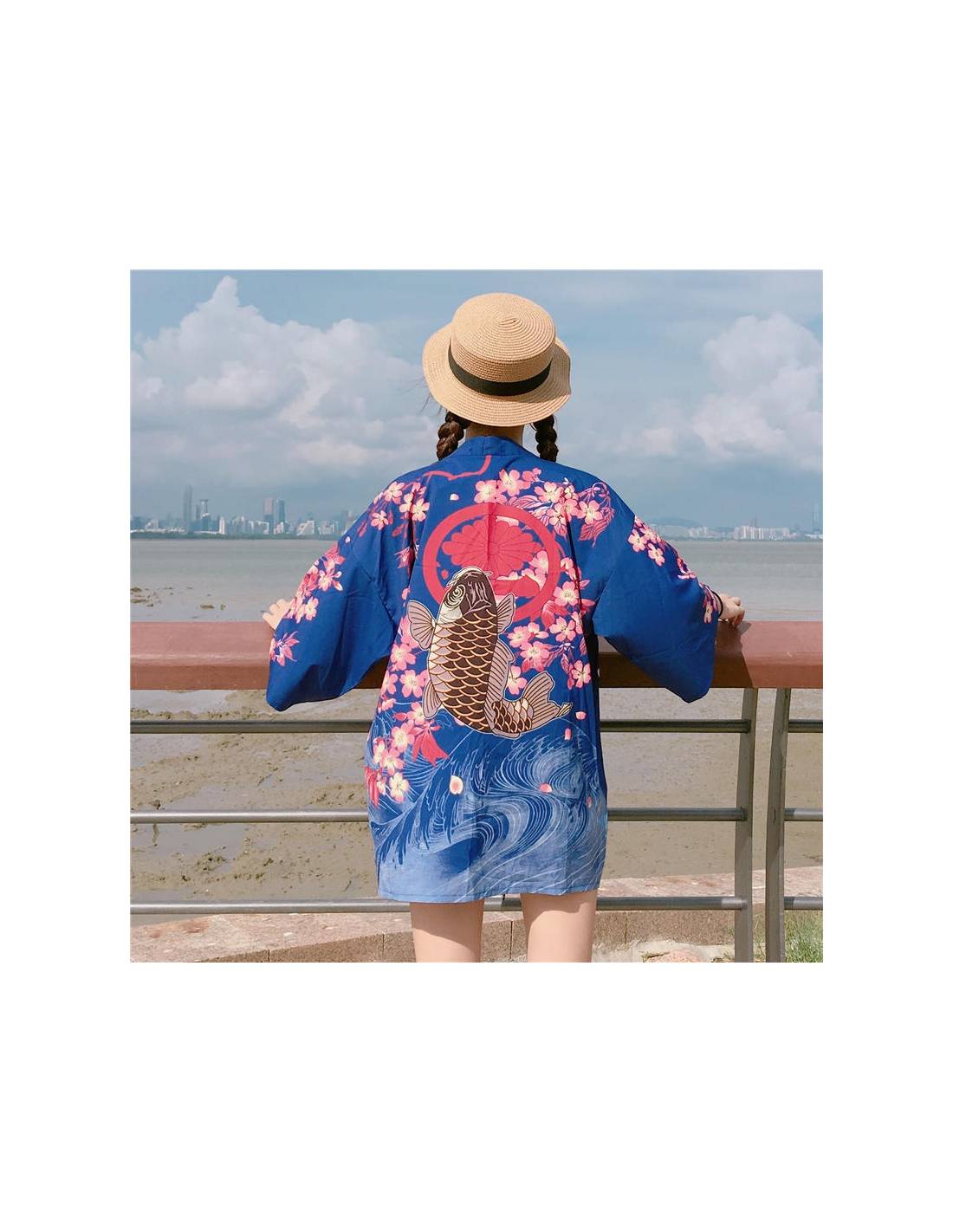 Kimono Manches courtes Col V Poissons — La silhouette japonaise légère, avec un motif poissons qui fait la différence