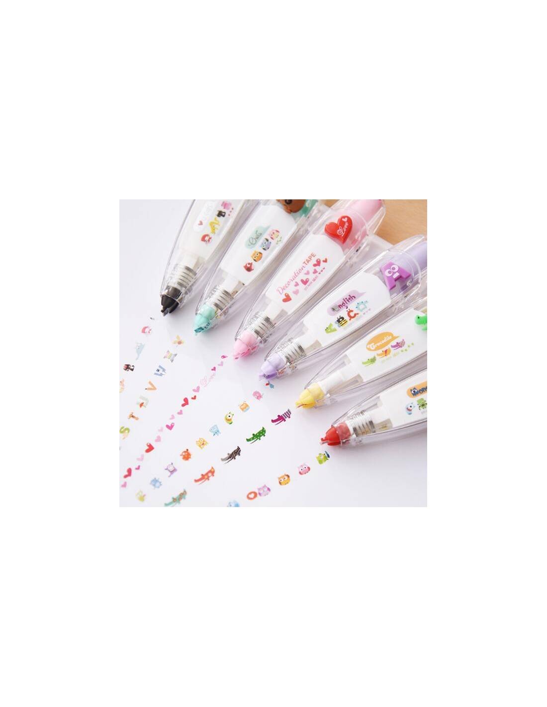 Des petit rouleaux transparants avec des petits motifs kawaii imprimés de différents thèmes (Monster, Alphabets, Puppy, Pets ) ! Customisez tout vos papiers et documents rapidement grâce à ce stylo.