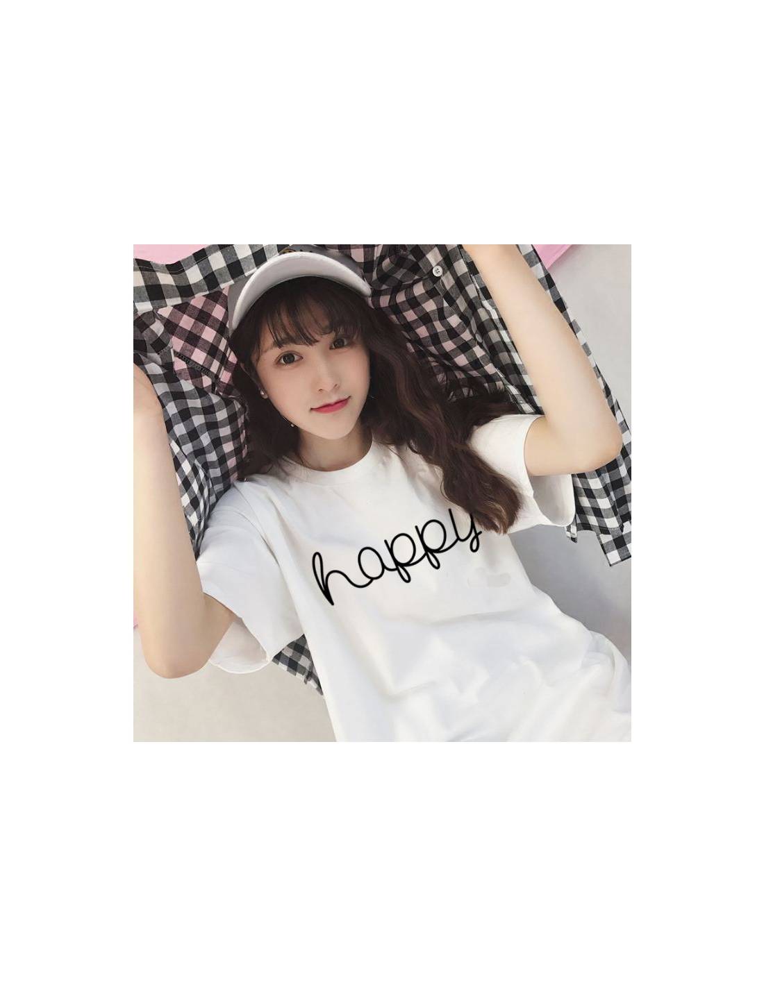 Ajoutez une touche de bonne humeur à votre garde-robe avec ce t-shirt "Happy" au style casual coréen.