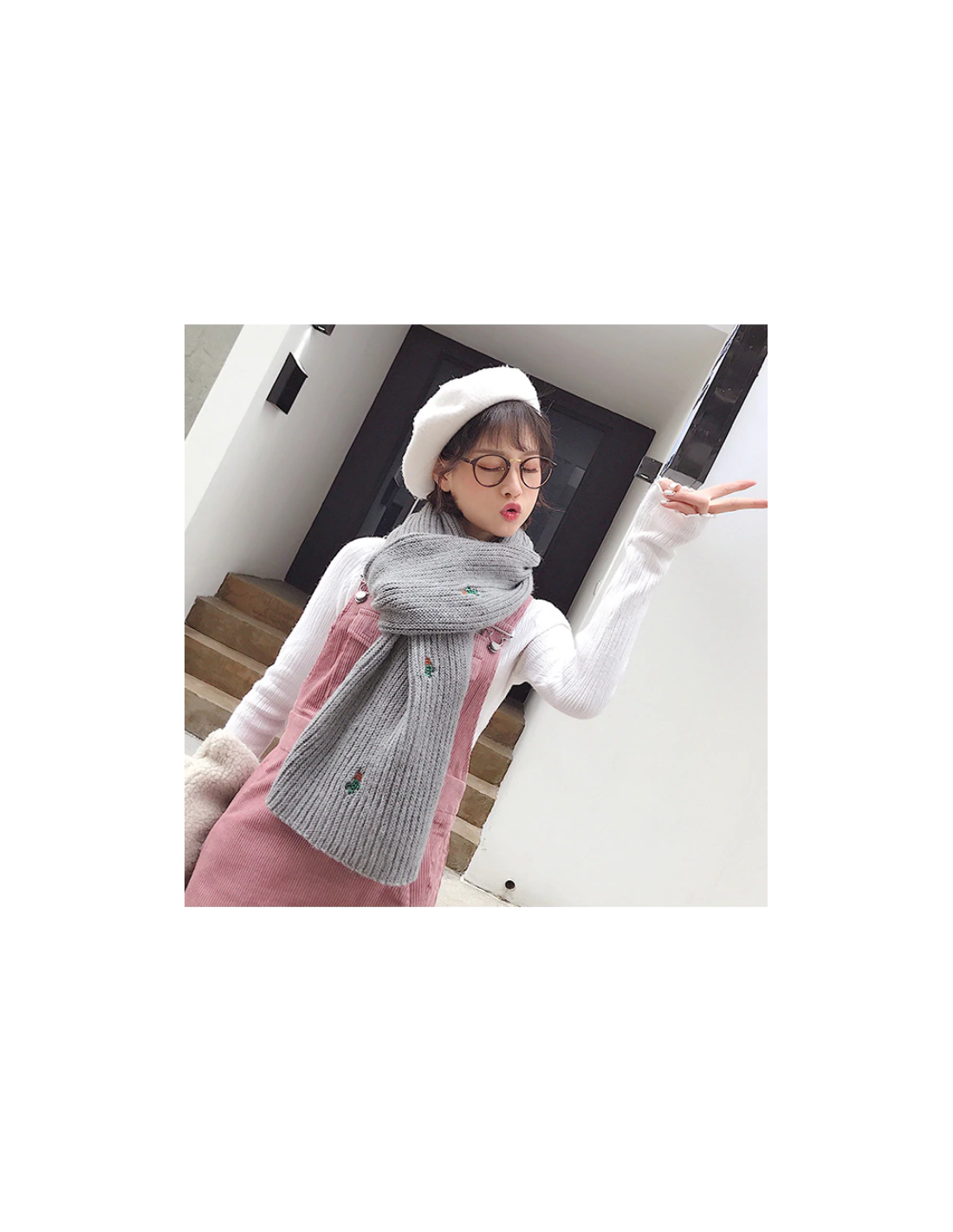 Motifs: Petit cactus brodés sur l'écharpe.