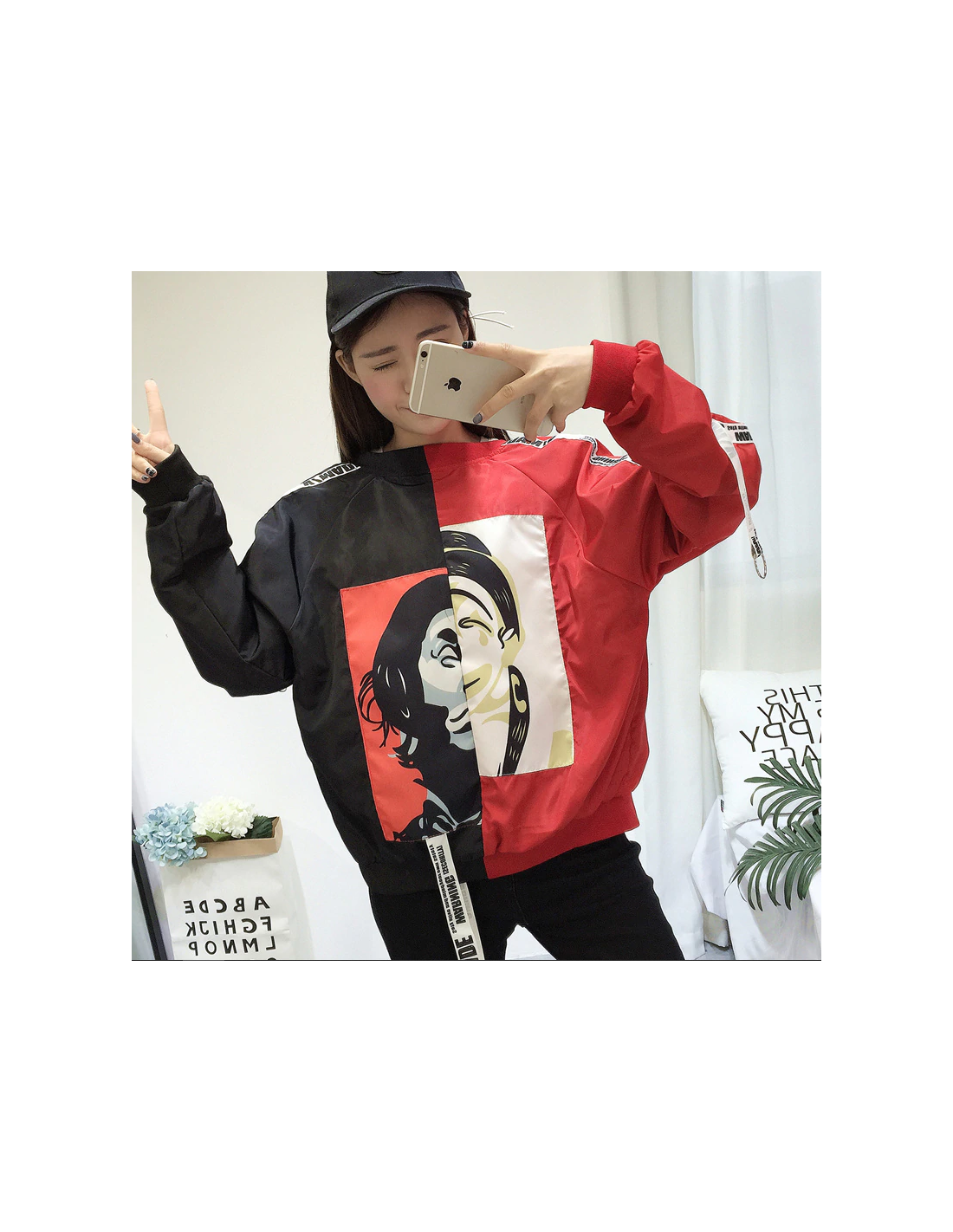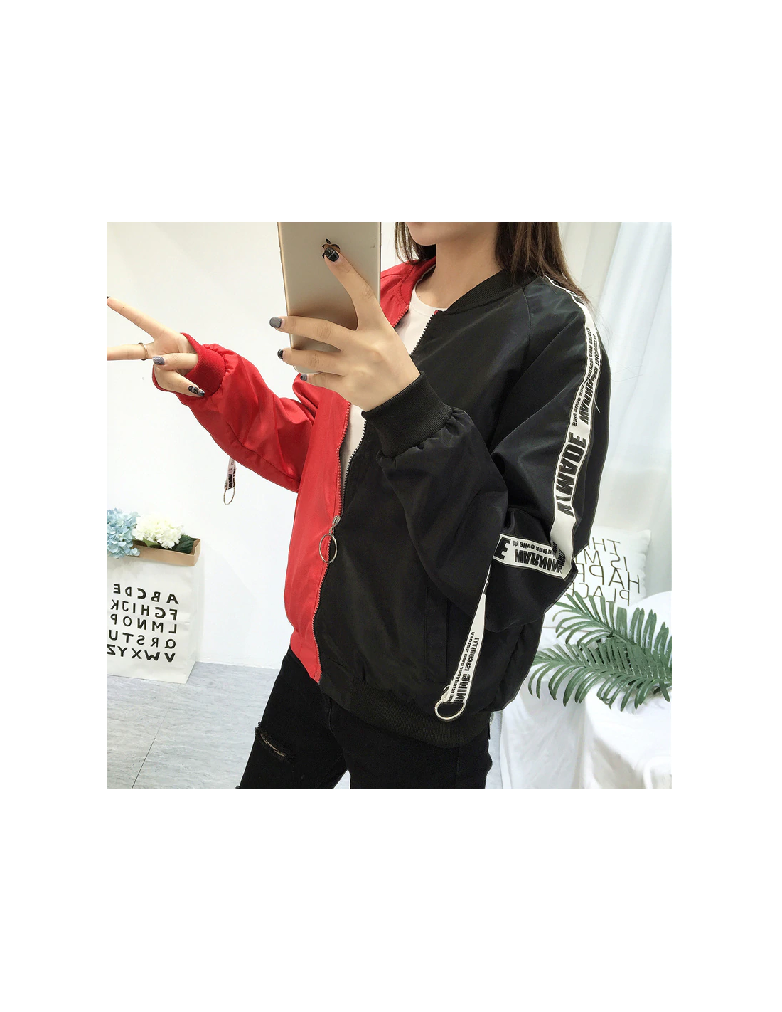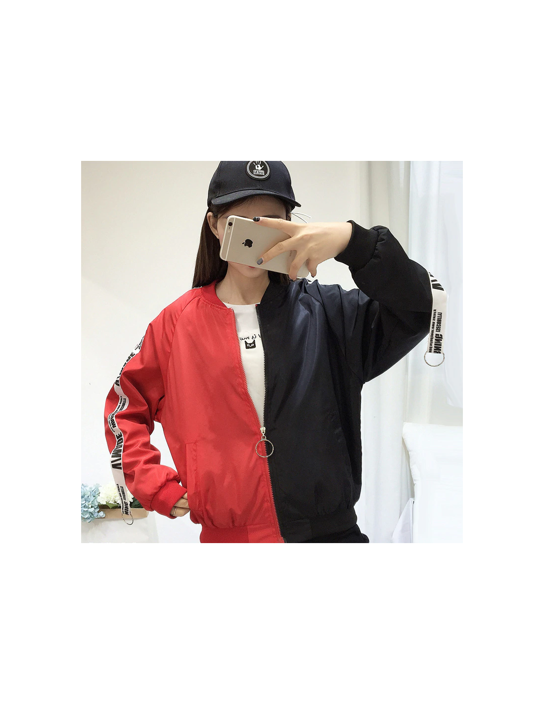 Bomber à imprimé asymétrique bi couelur noir et rouge.