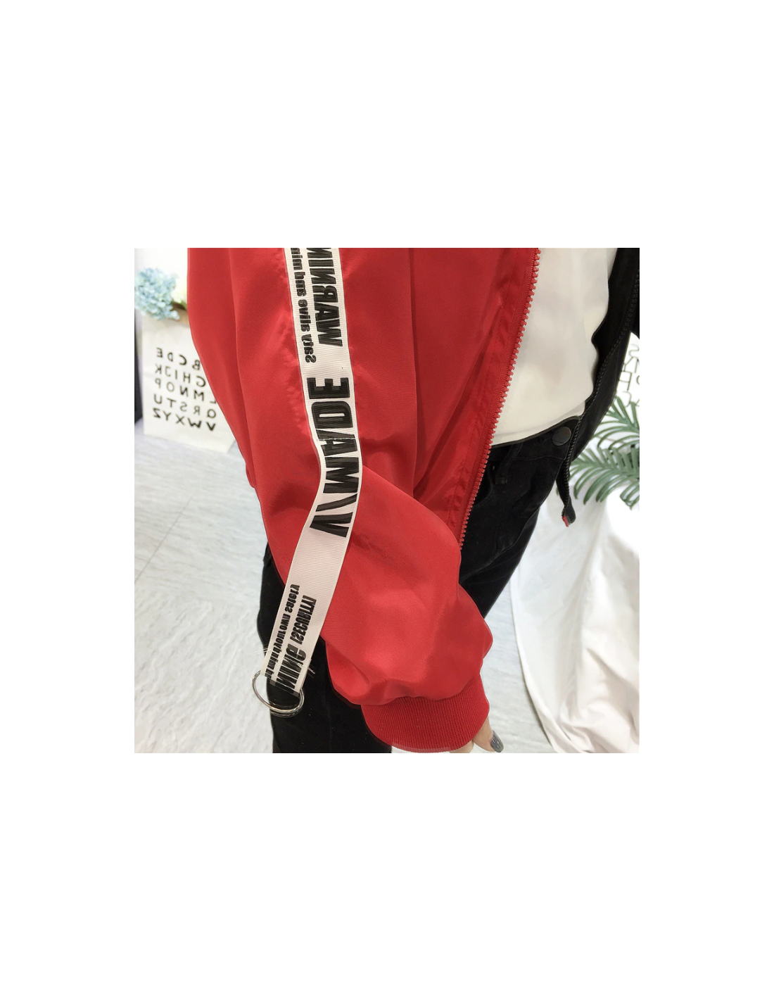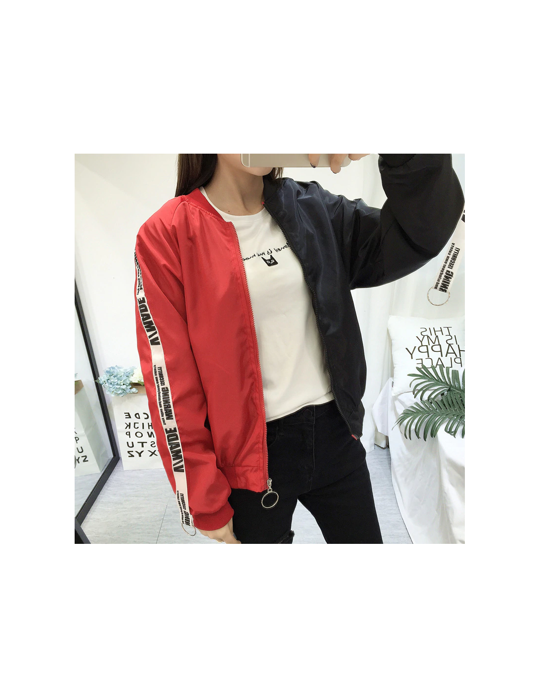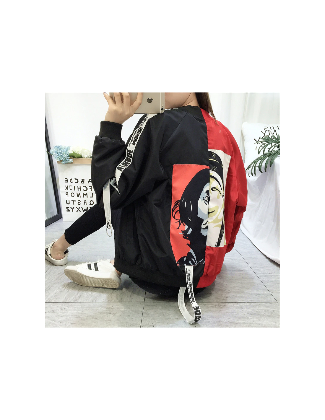 Bomber à imprimé asymétrique bi couelur noir et rouge.