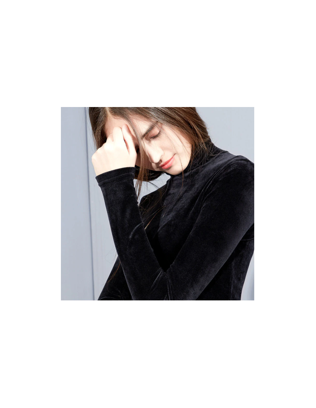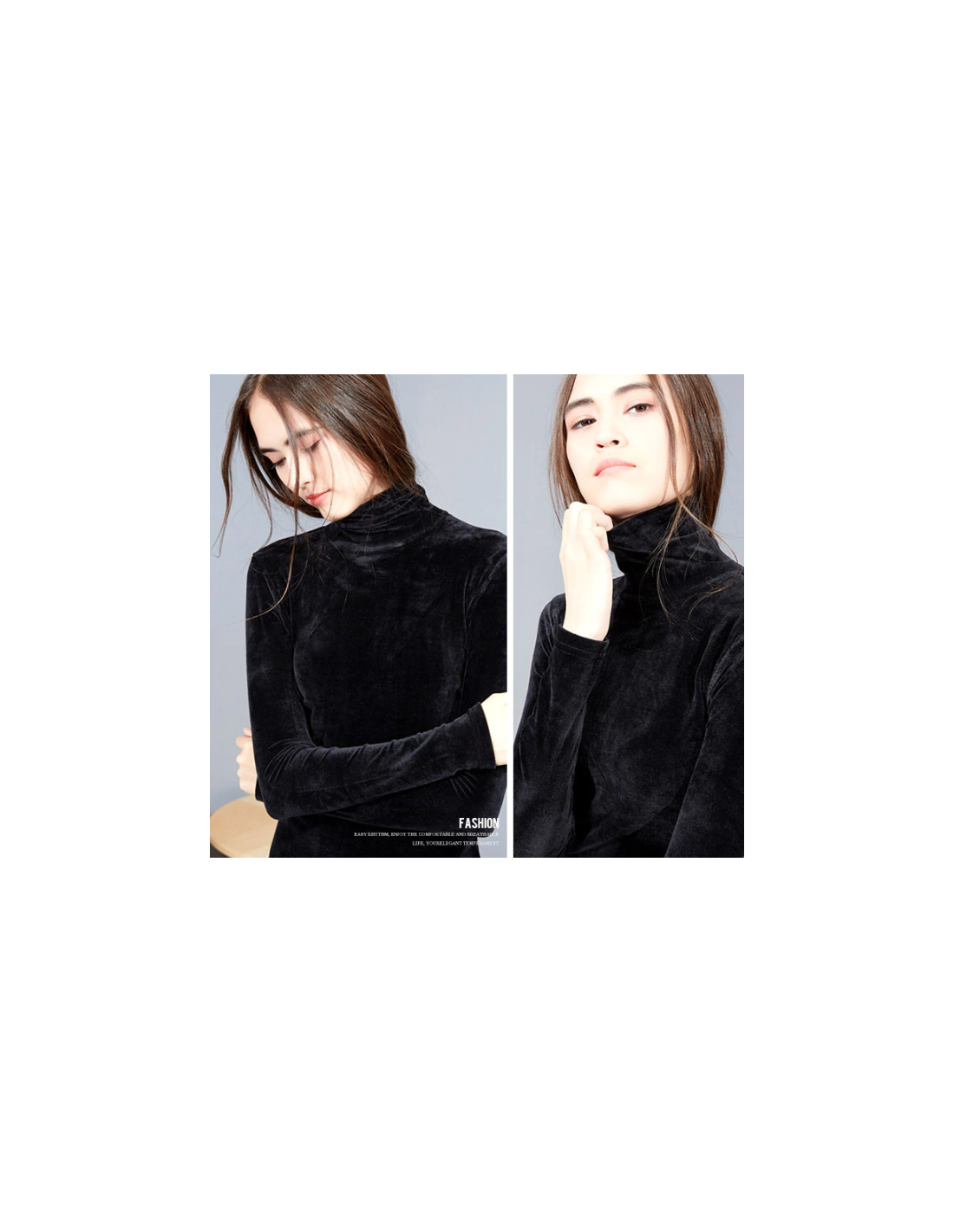 Jolie pull simple à col roulé et manche longue imitation velour.