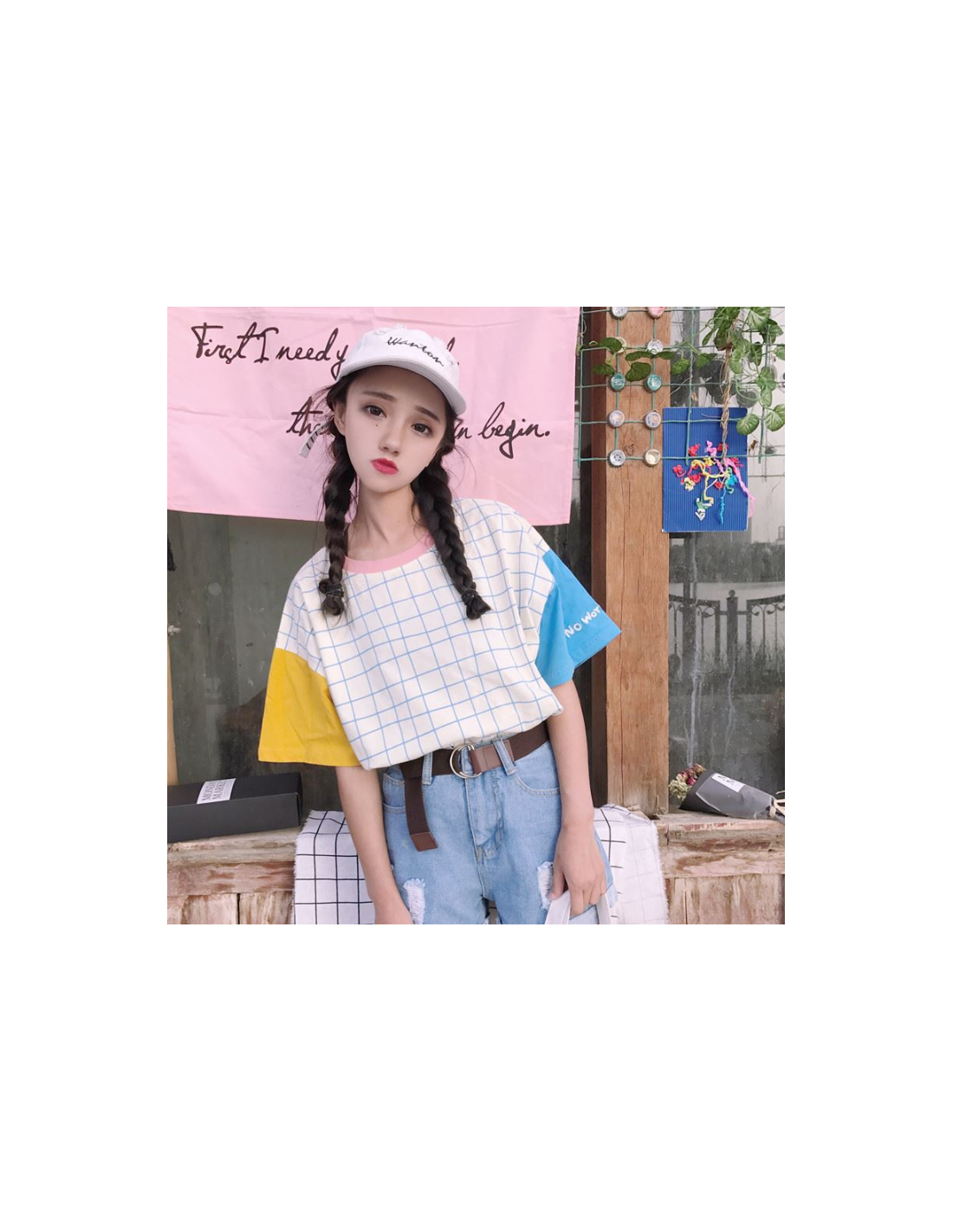 Le t-shirt Harajuku tricolore quadrillé est une pièce audacieuse qui allie originalité et confort.
