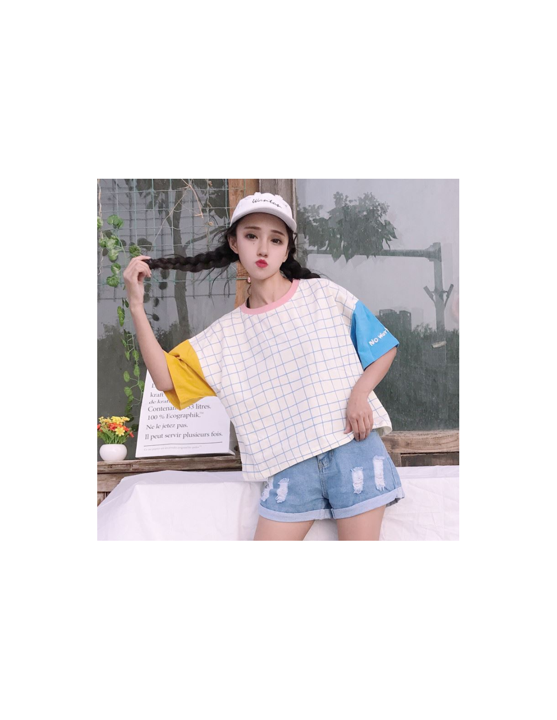 Inspiré de la mode Harajuku, il arbore un design tricolore unique avec un motif quadrillé qui lui donne une touche dynamique et moderne.