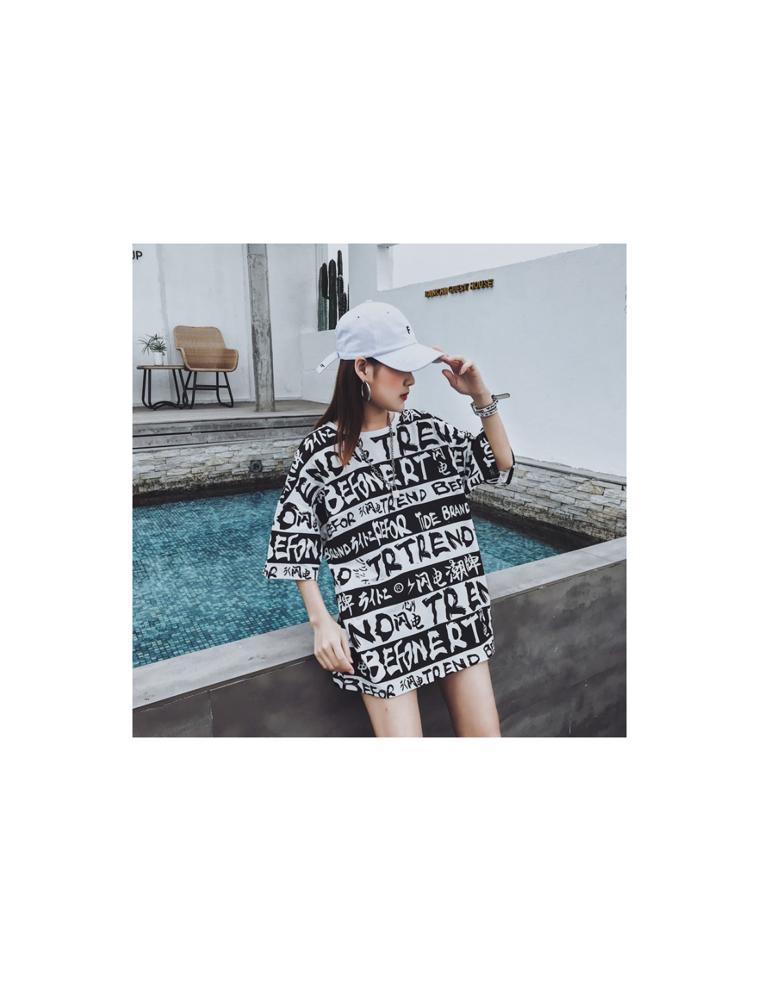 T-shirt long extra large aux imprimés écriture sur rayures noires et blanches !