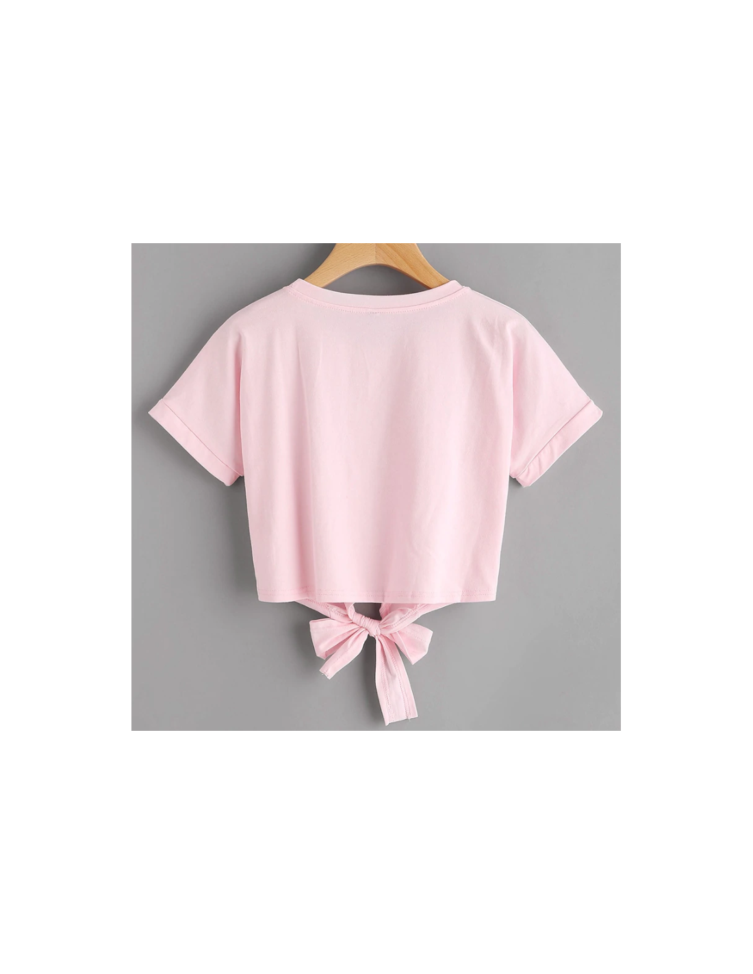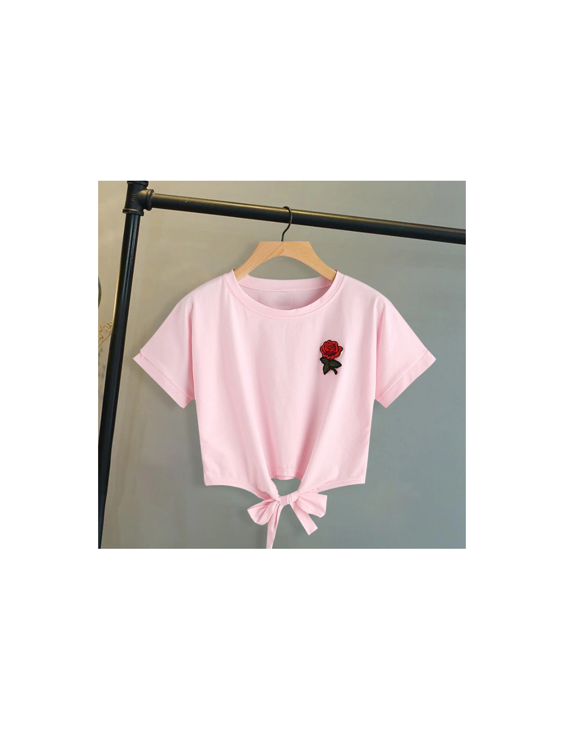 T-shirt court à noeud ! Broderie rose sur la poitrine.