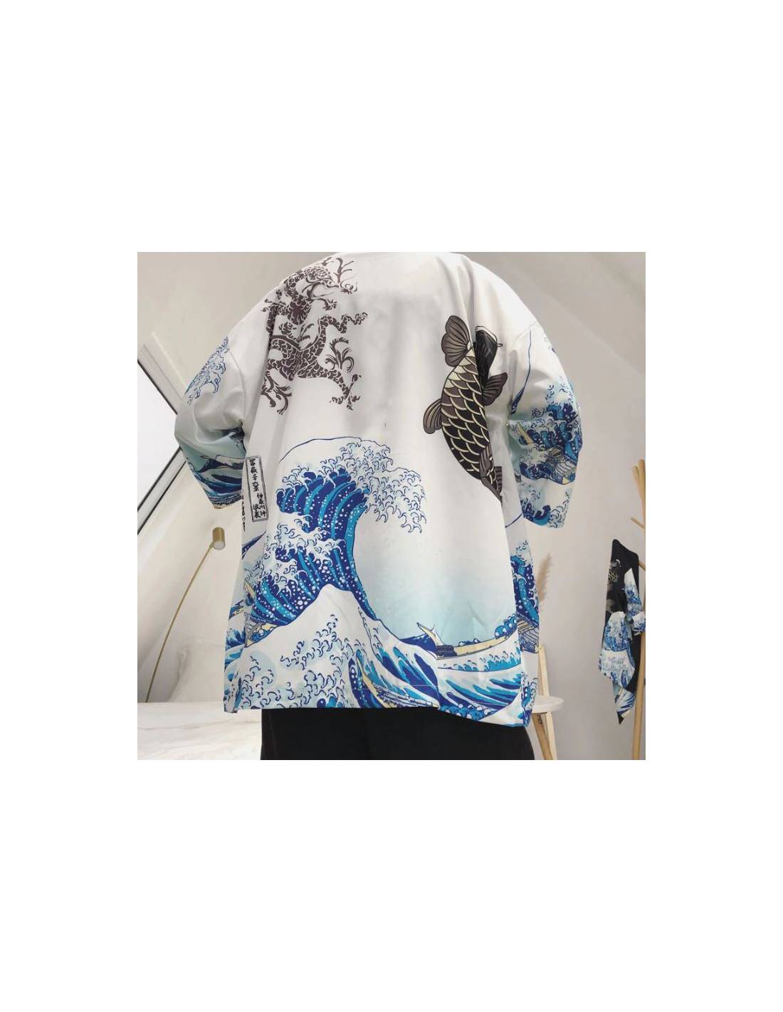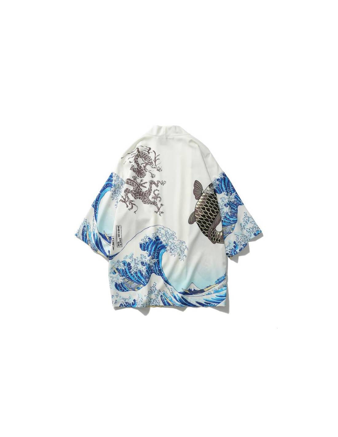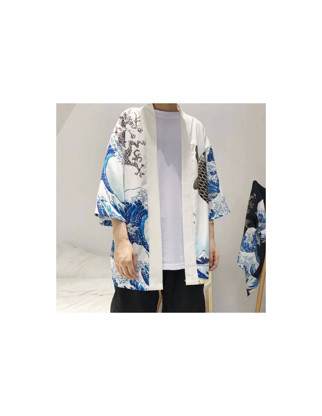 Plongez dans l'essence de la tradition japonaise avec ce magnifique kimono, disponible en deux couleurs élégantes : noir et blanc. Ce kimono se distingue par son design artistique inspiré des célèbres estampes japonaises, combinant des motifs de vagues déchaînées et une carpe koi, symboles de force, de persévérance et de transformation dans la culture japonaise.