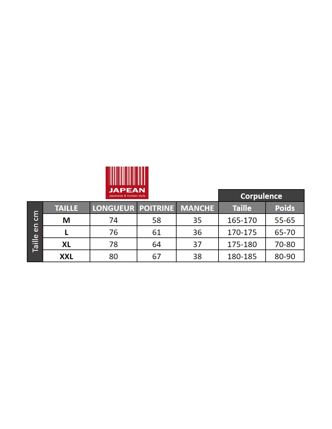 Conseil Japean : Les mensurations sont indiquées dans la galerie d'images !