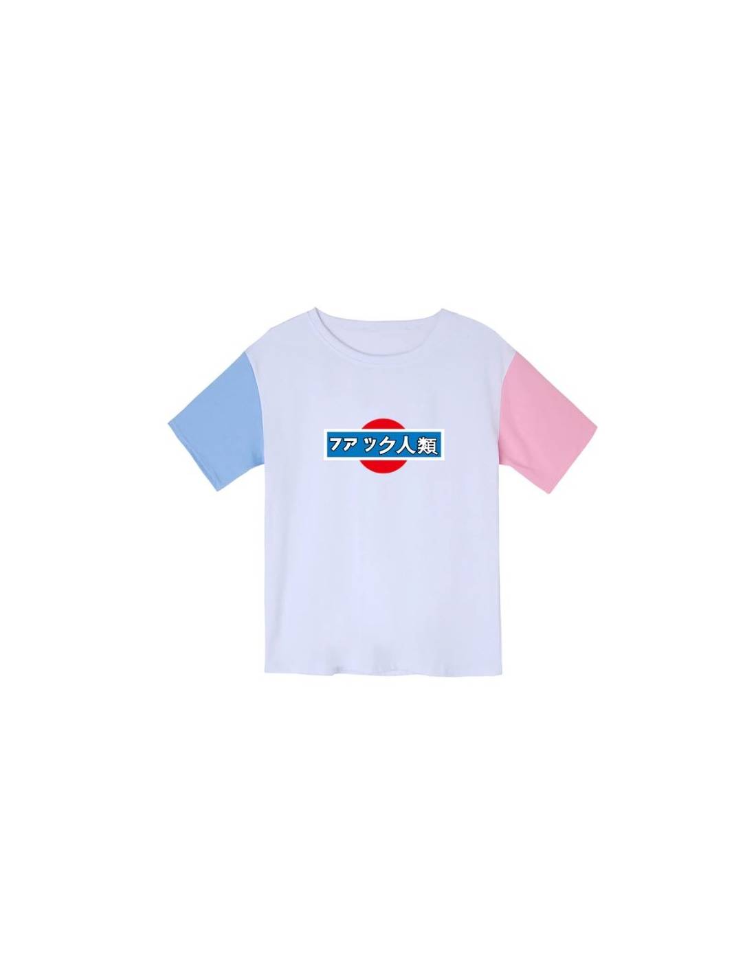 T-shirt oversize nishiki avec une manche rose et l'autre bleu.