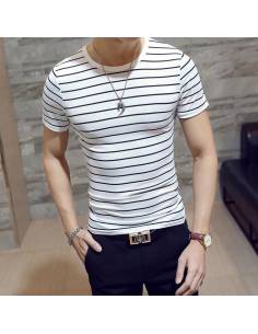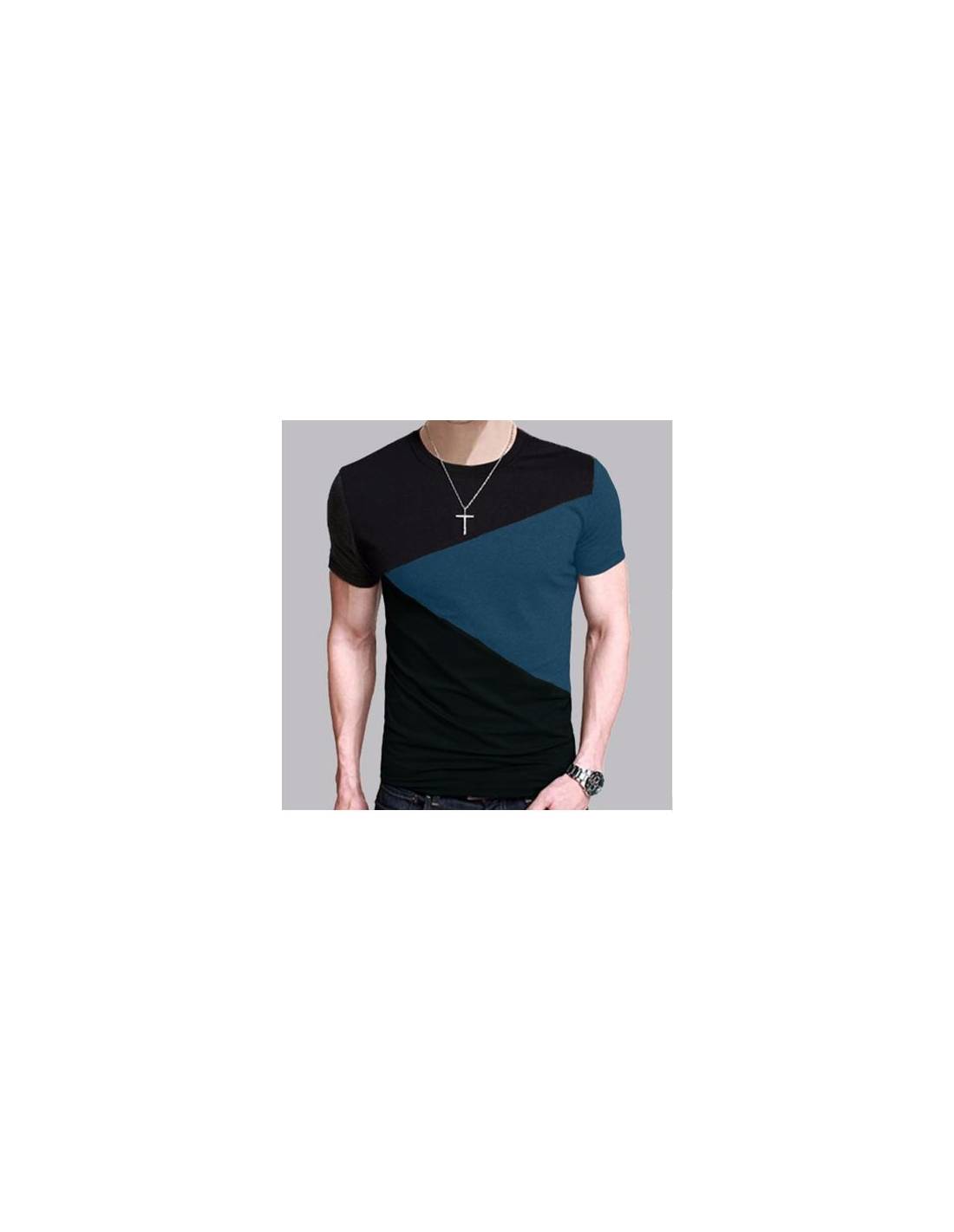 T-shirt à manche courte imprimé triable bleu avec une manche bleu, simple mais original !