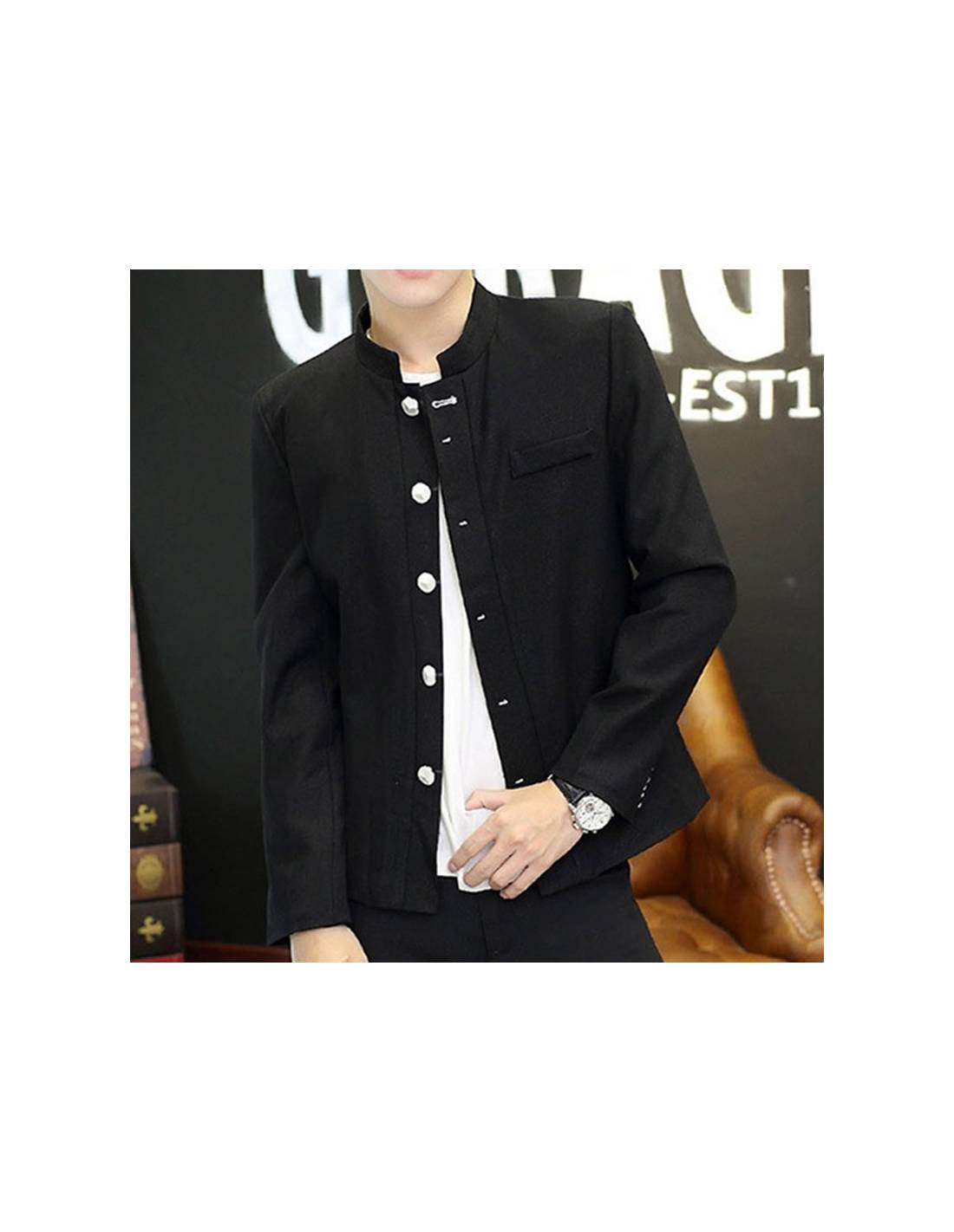 Veste col mao homme noir