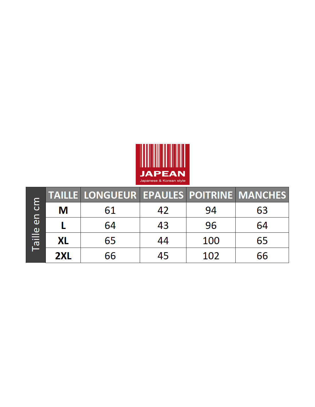 Conseil Japean: prenez de tailles au dessus de la votre (Si vous faites du M prenez du XL). Les mensurations sont indiquées dans la galerie d'images !