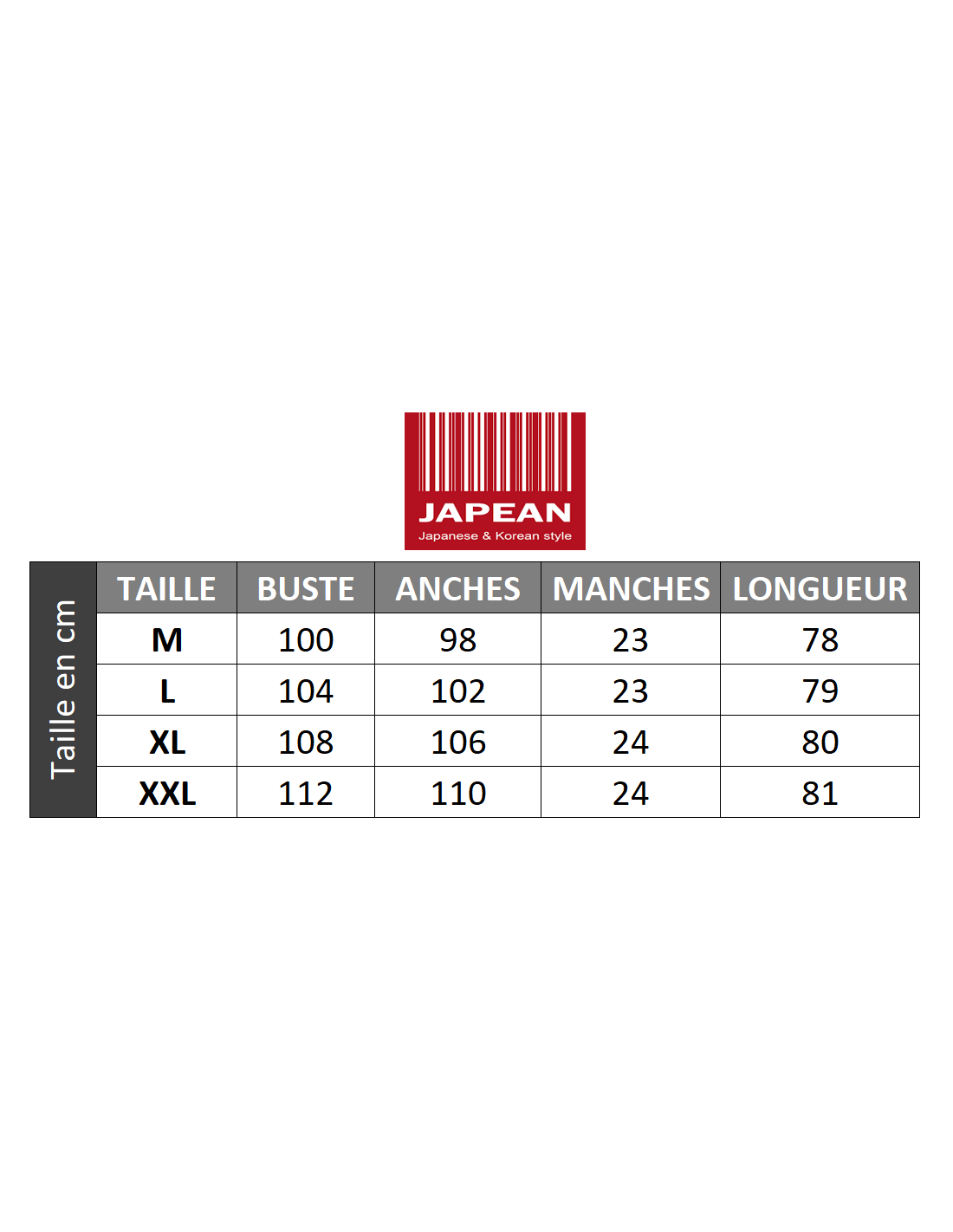 Conseil Japean : Les mensurations sont indiquées dans la galerie d'images !