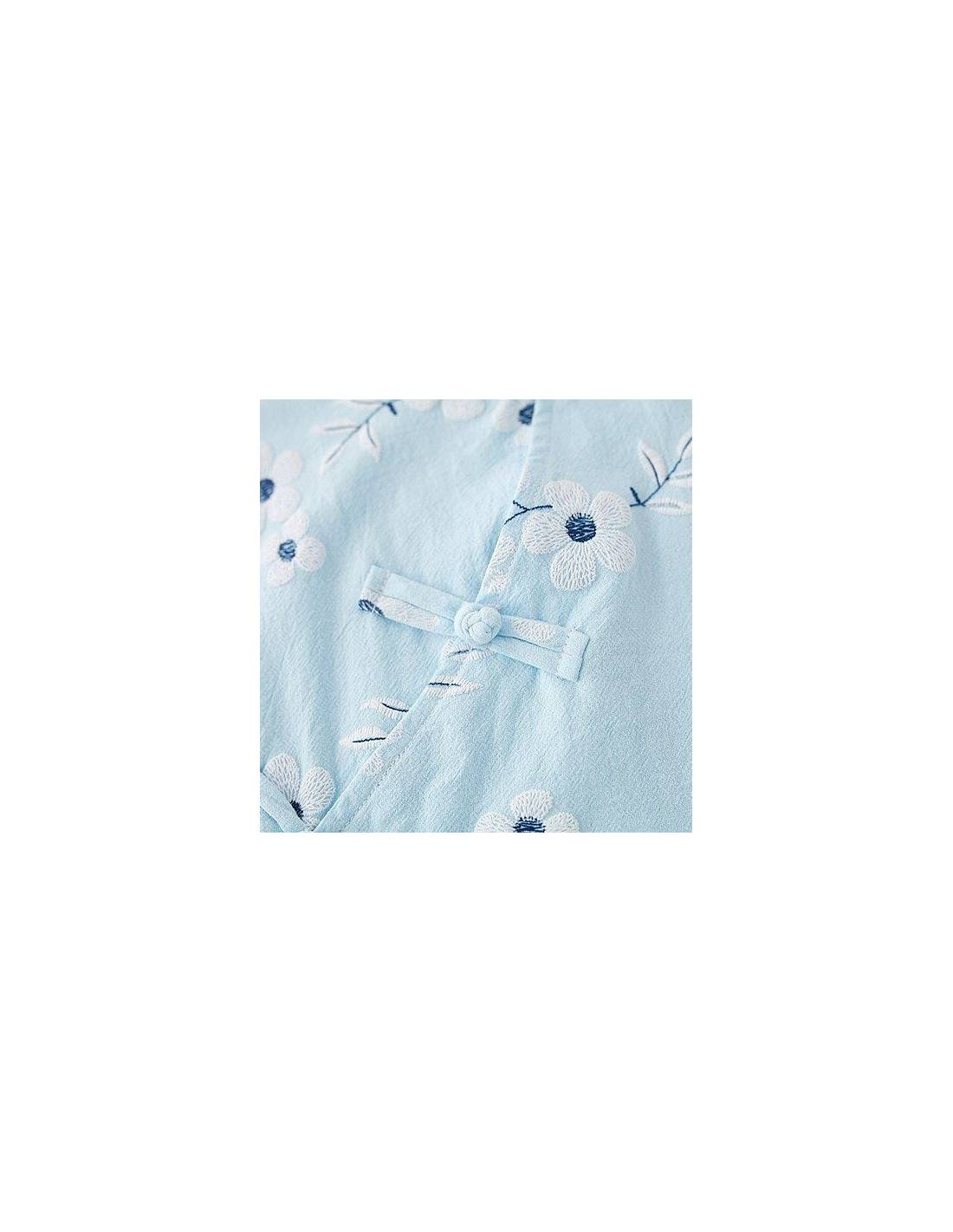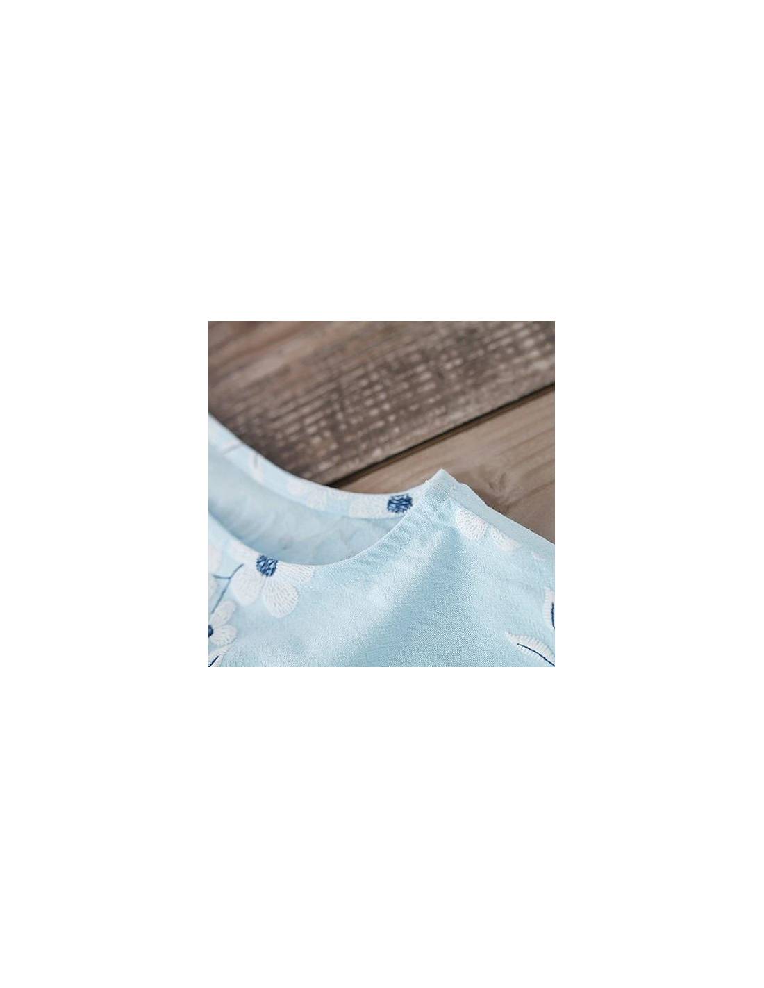 Idéal pour l'été avec des couleurs claires et des motifs à fleurs blanches.
