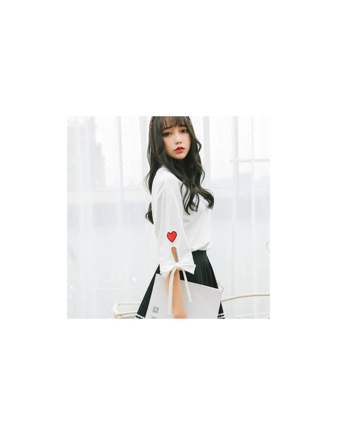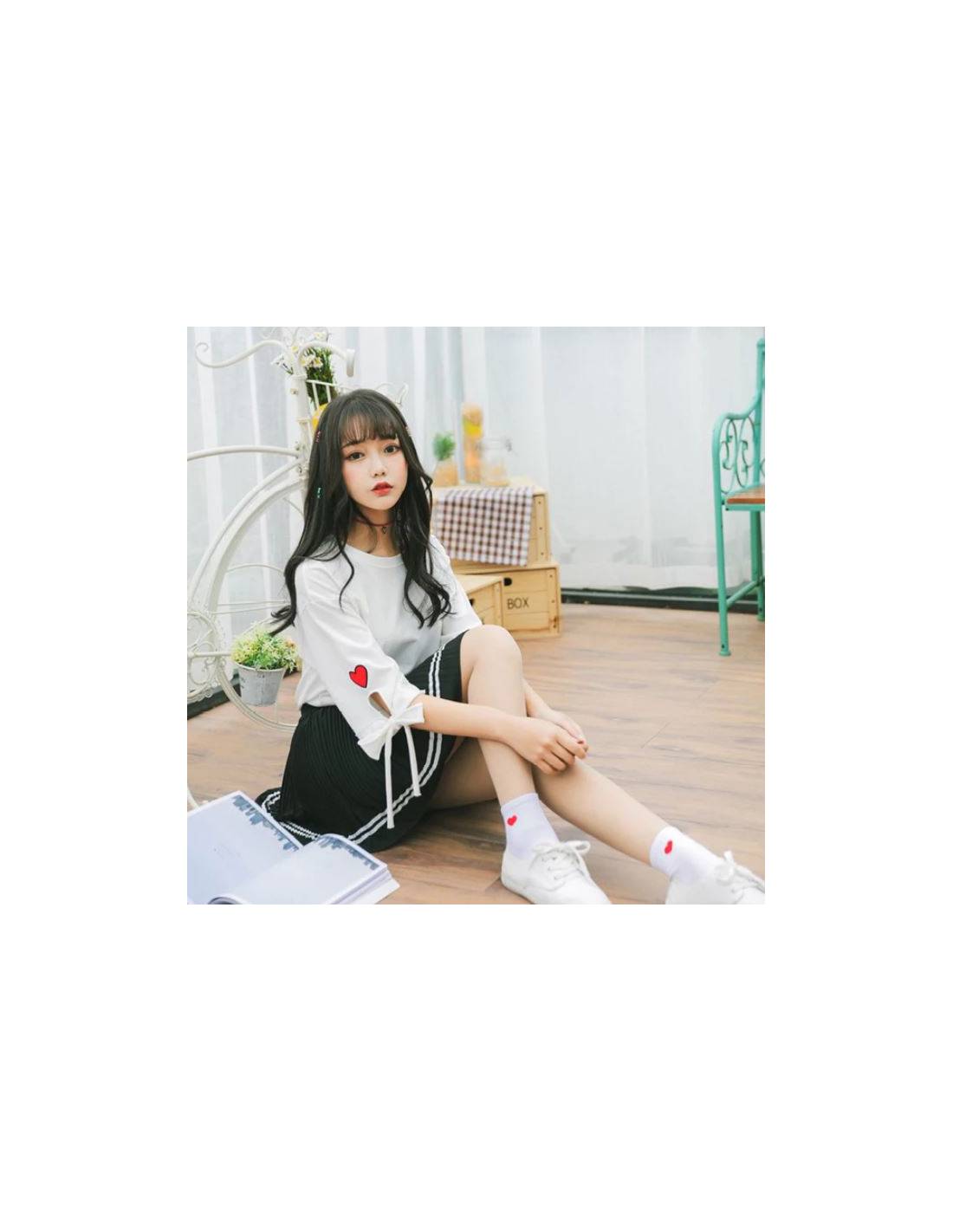 T-shirt à manches mi-longues finis par un noeud. Imprimé petit coeur et love me sur le bout des manches.