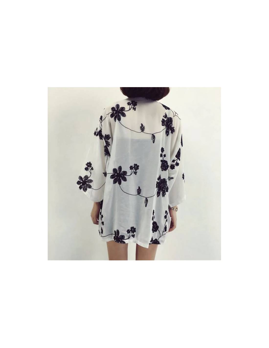 Cardigan aux motifs brodés fleur, blanc ou noir. Tissus léger et transparent.