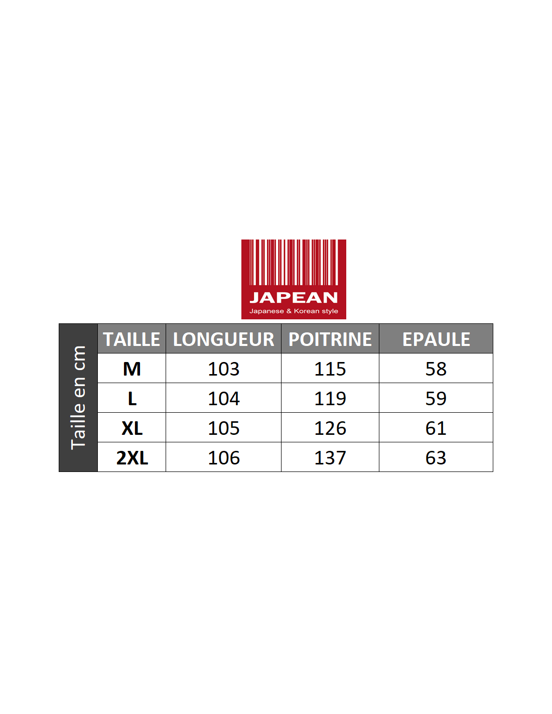 Les mensurations exactes et le guide des tailles sont disponibles dans la galerie d’images.