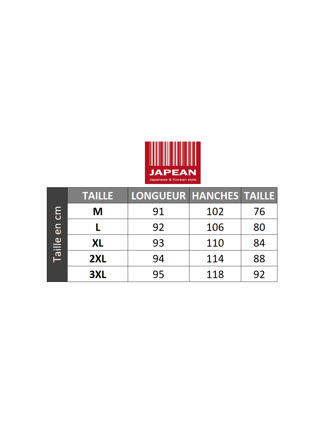 Conseil Japean: Les mensurations sont indiquées dans la galerie d'image !