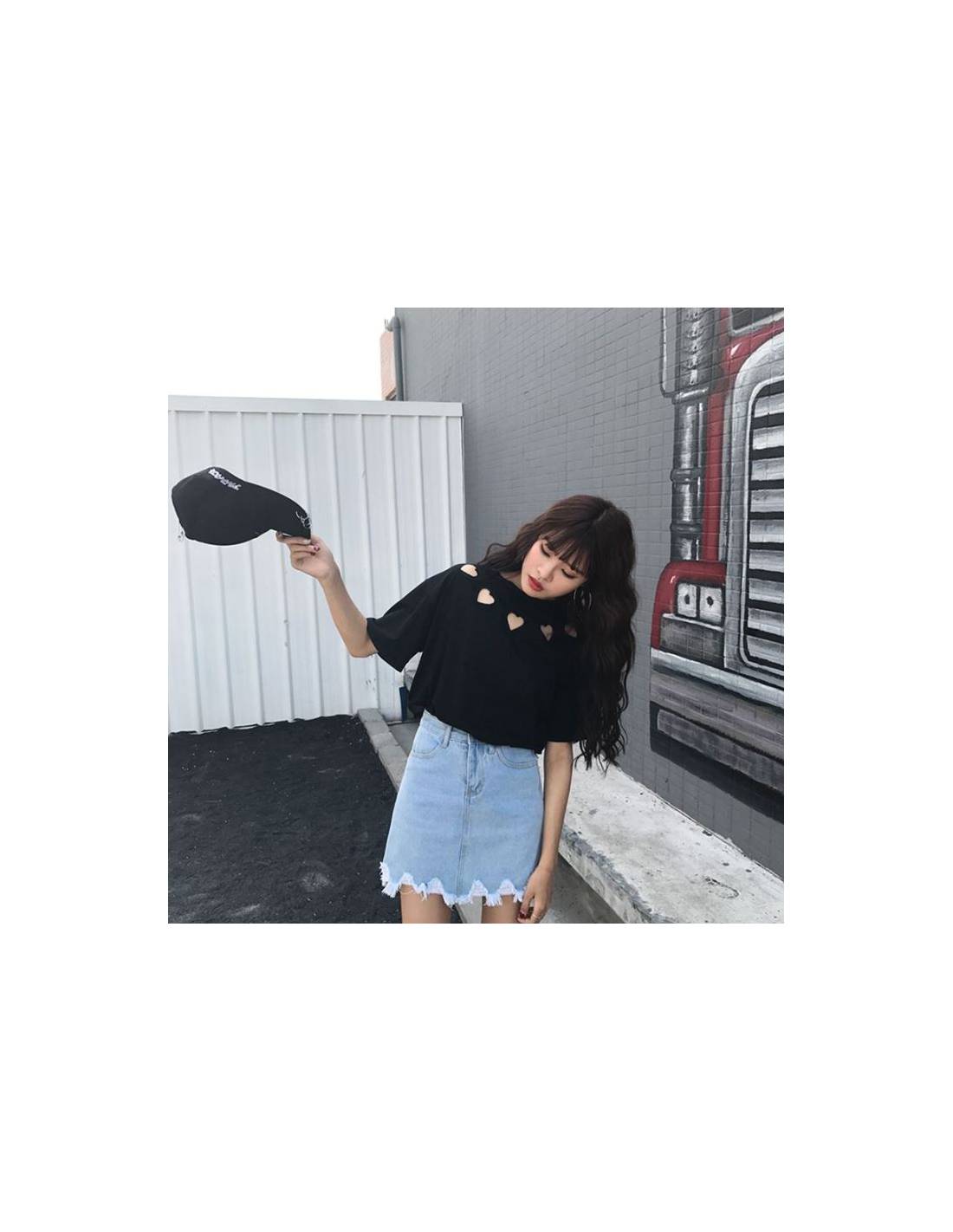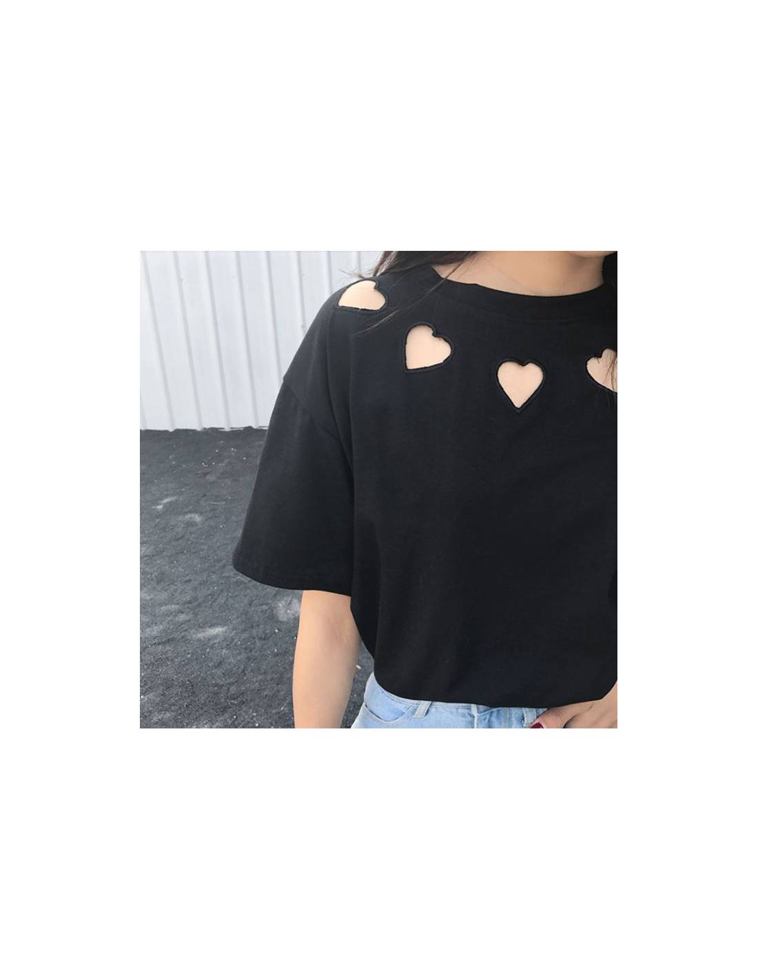 Jolie t-shirt à col rond avec des coeurs tout autour de l'encolure trop mignon !