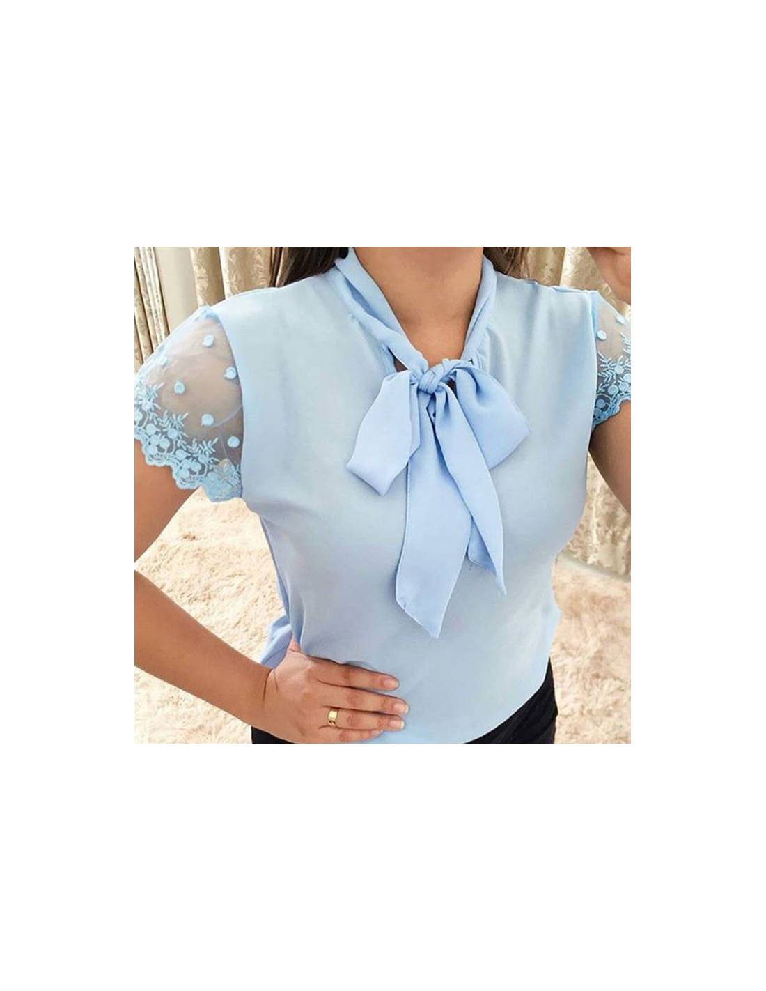 Chemisier à manches courtes façon dentelles avec noeud au col, jolie couleur pastel bleu clair parfait pour l'été