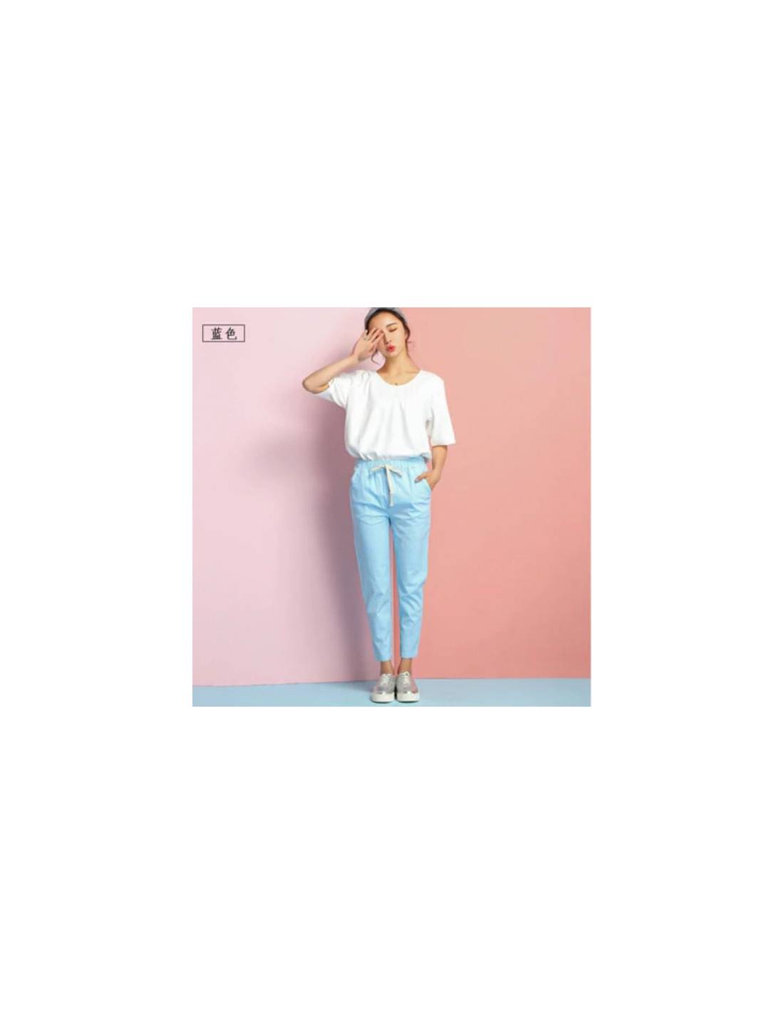 Pantalon décontracté bleu ciel, poches de chaque côté et taille élastique