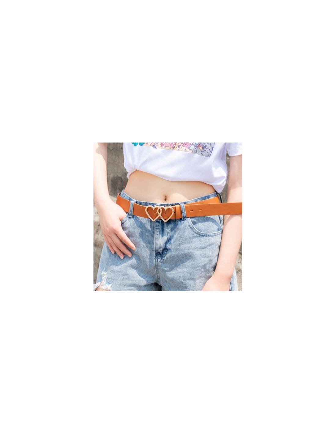 Ceinture marron pour femme avec boucle de fermeture en forme de coeur !