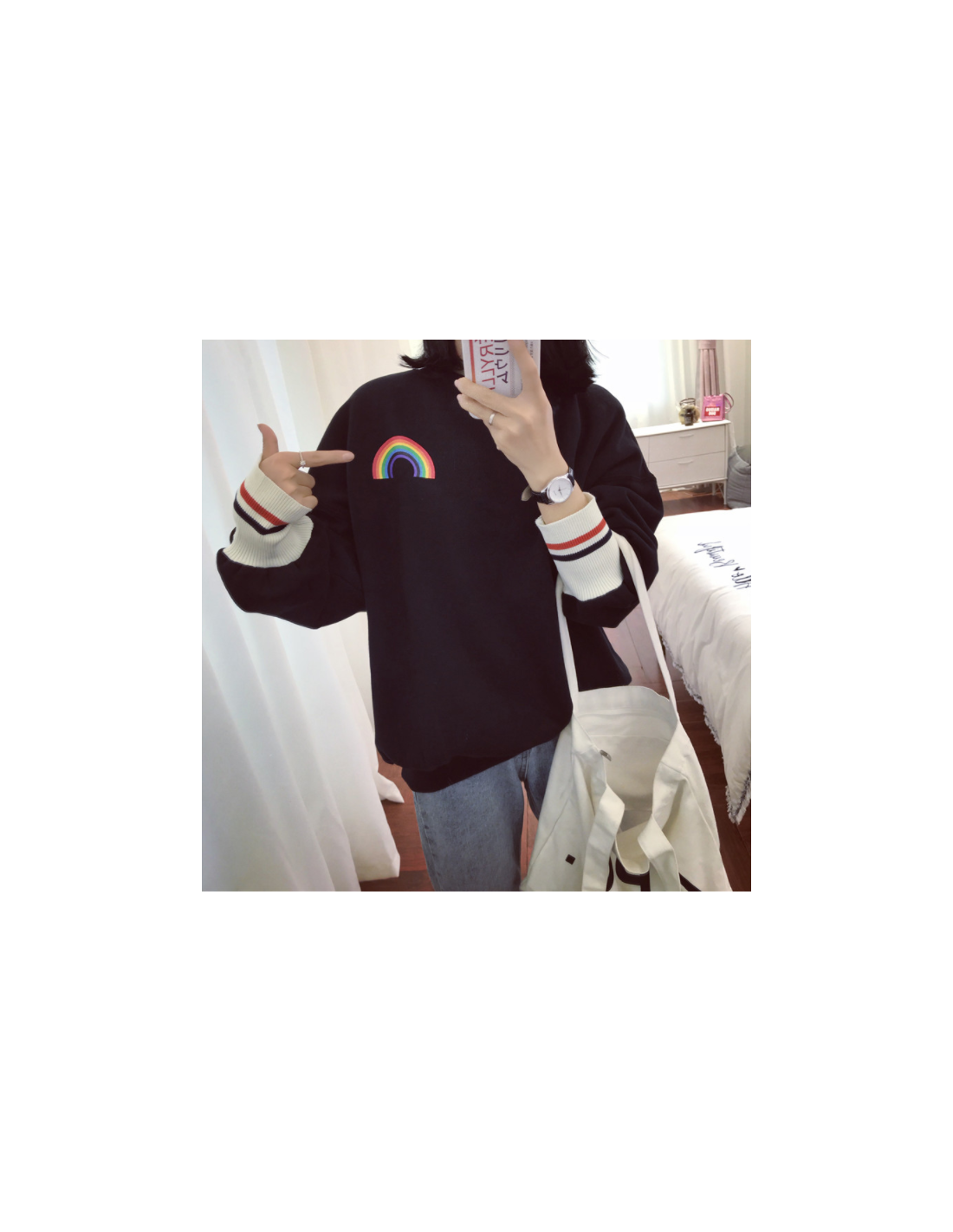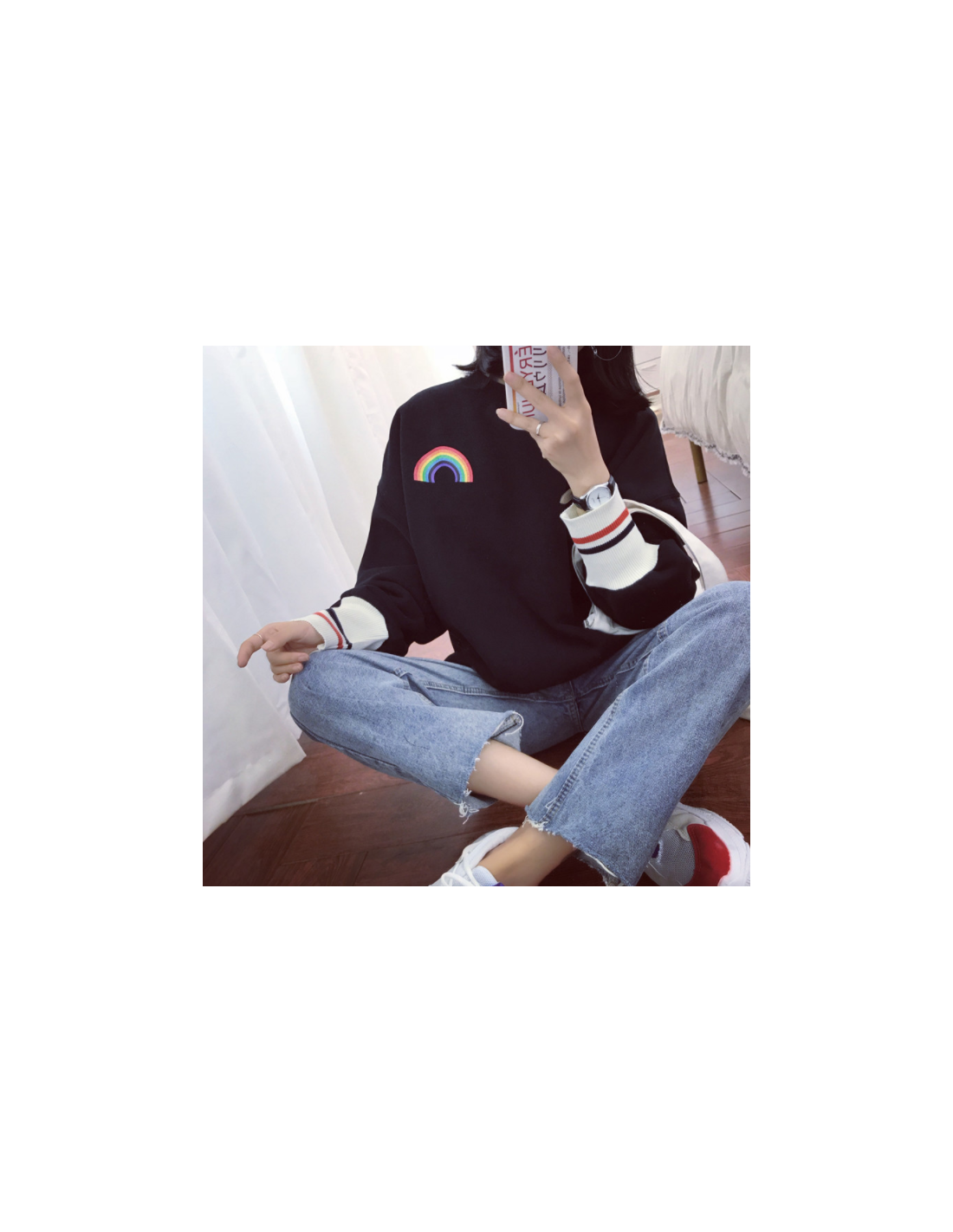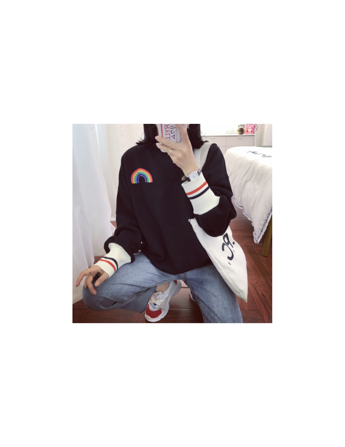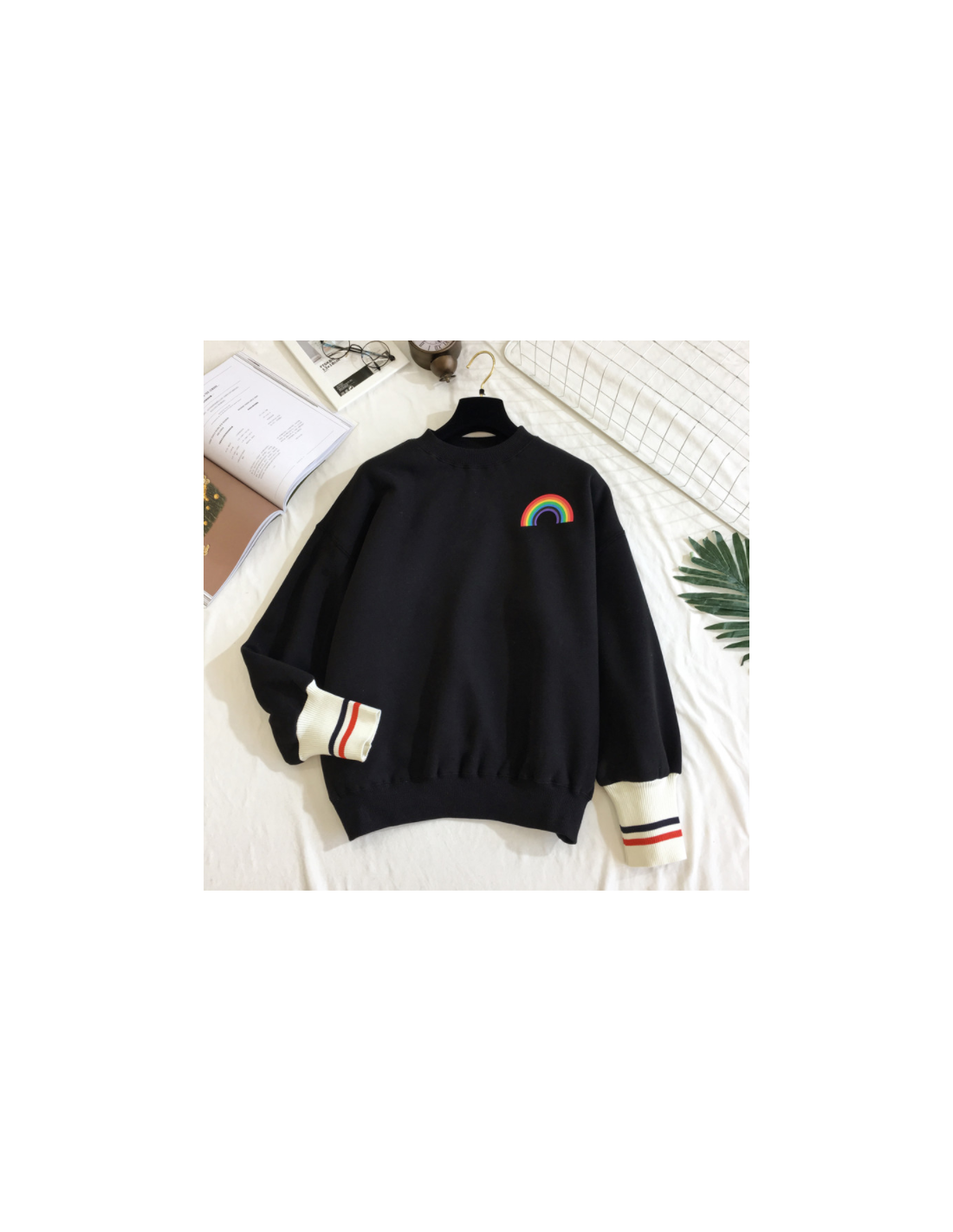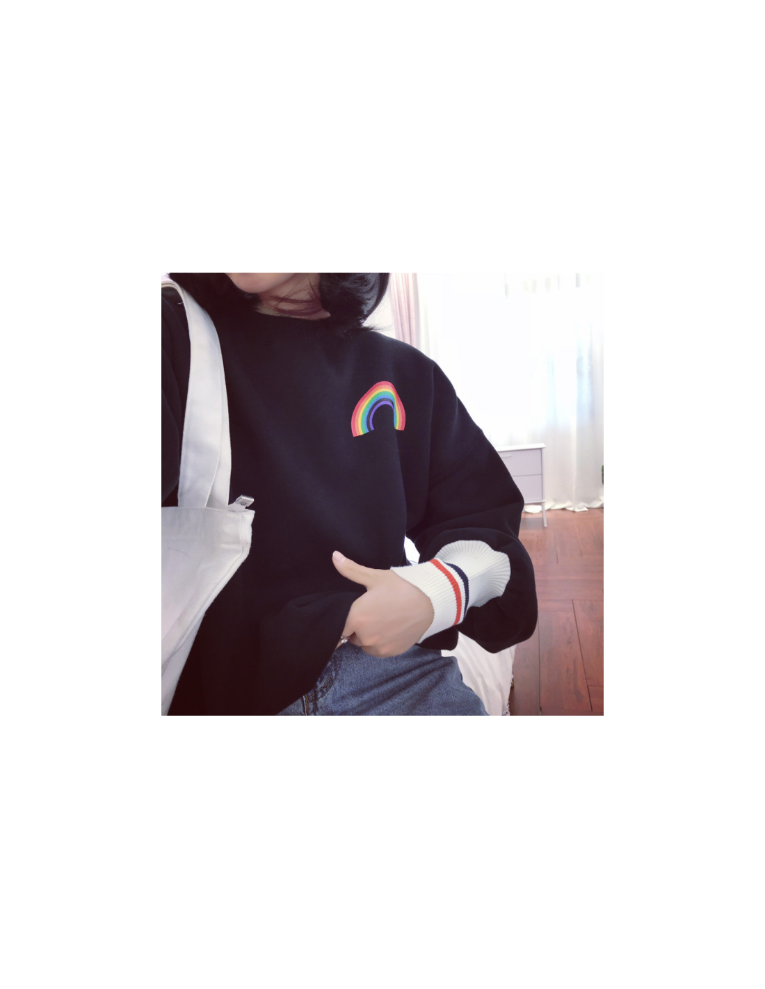 Sweatshirt streetwear noir et manches resserrés au bout avec petit motif arc en ciel pour la touche Kawaii !