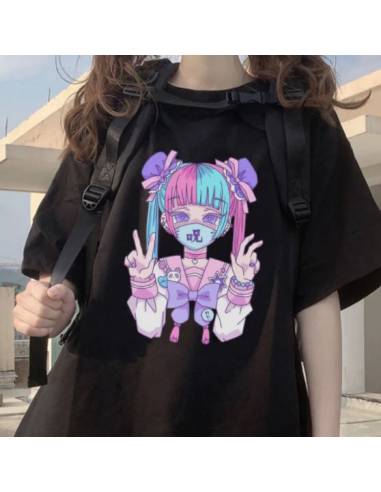 T-shirt imprimé kawaii girl animé