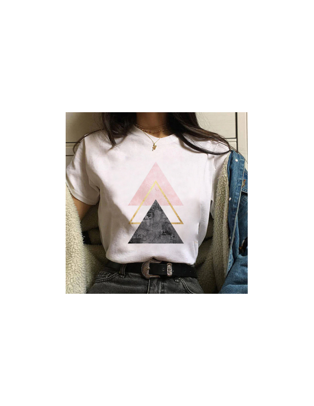 Simple t-shirt blanc avec 3 triangles imprimés