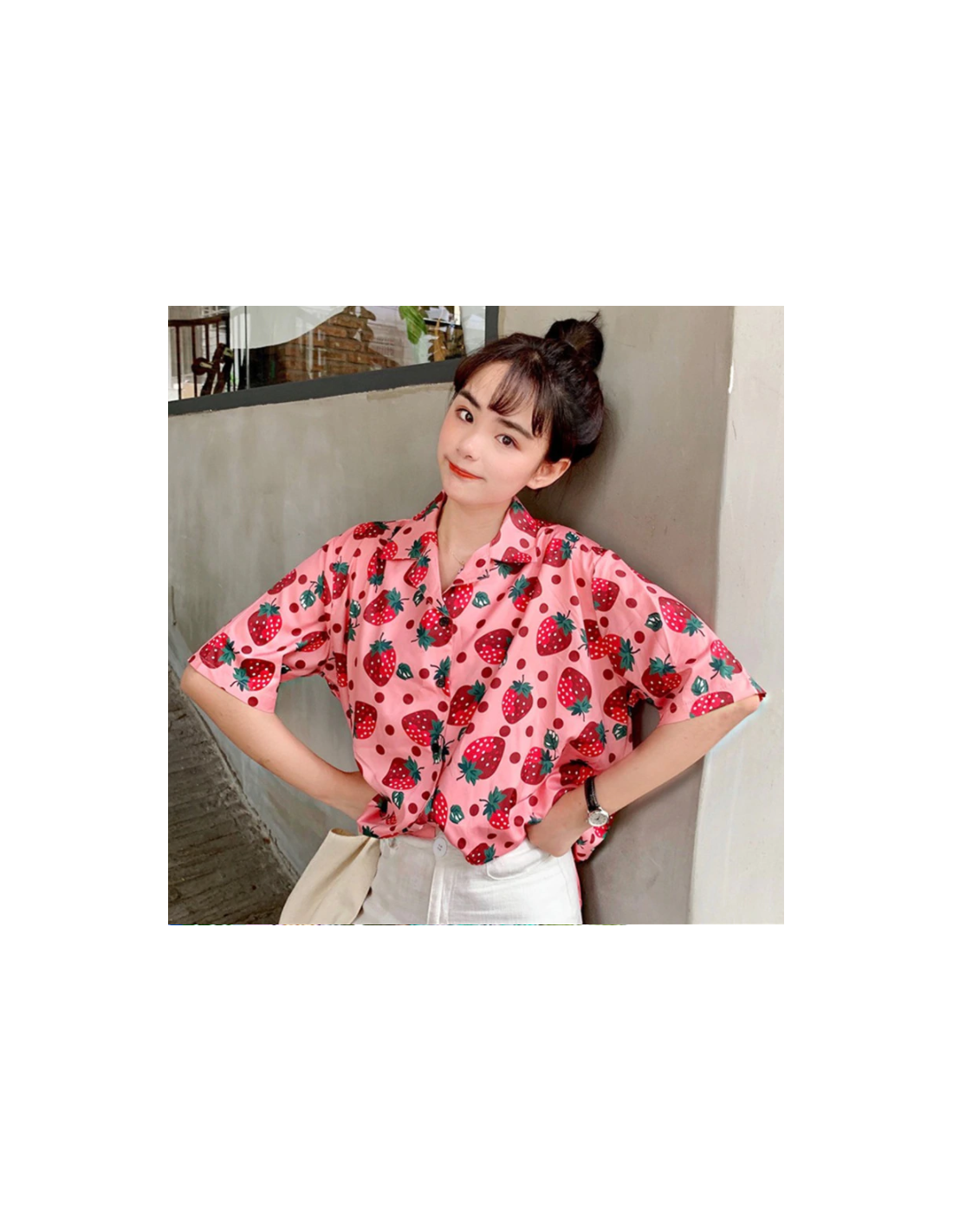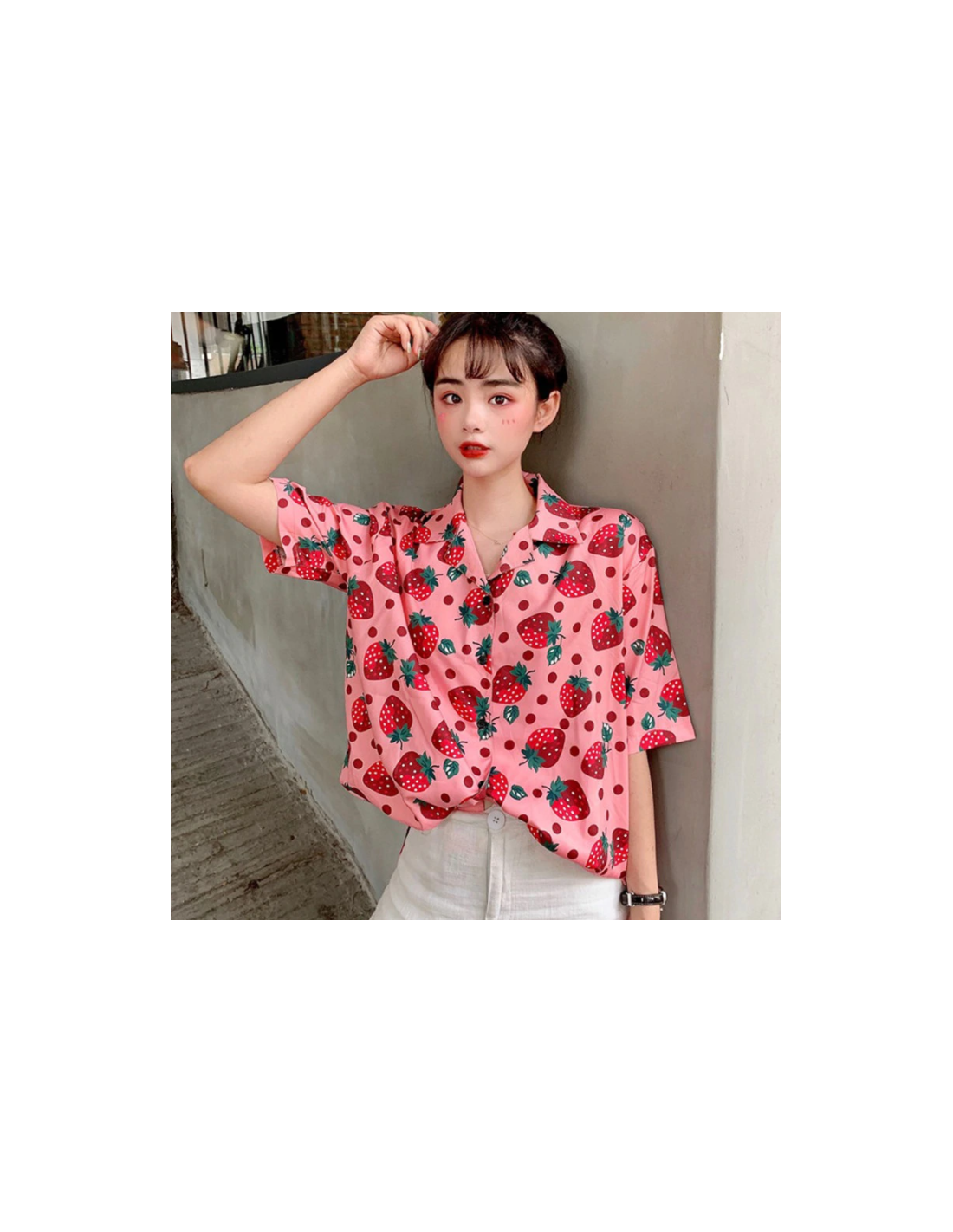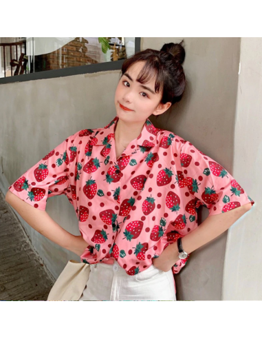 Chemisier au colori flashy très estival avec des pois et des fraises imprimés