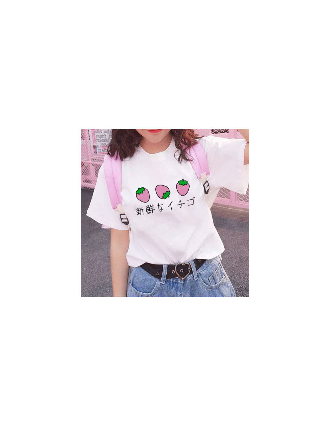 Son design minimaliste est rehaussé par des petites fraises, inspiré du style japonais, ajoutant une touche ludique et colorée à votre tenue.