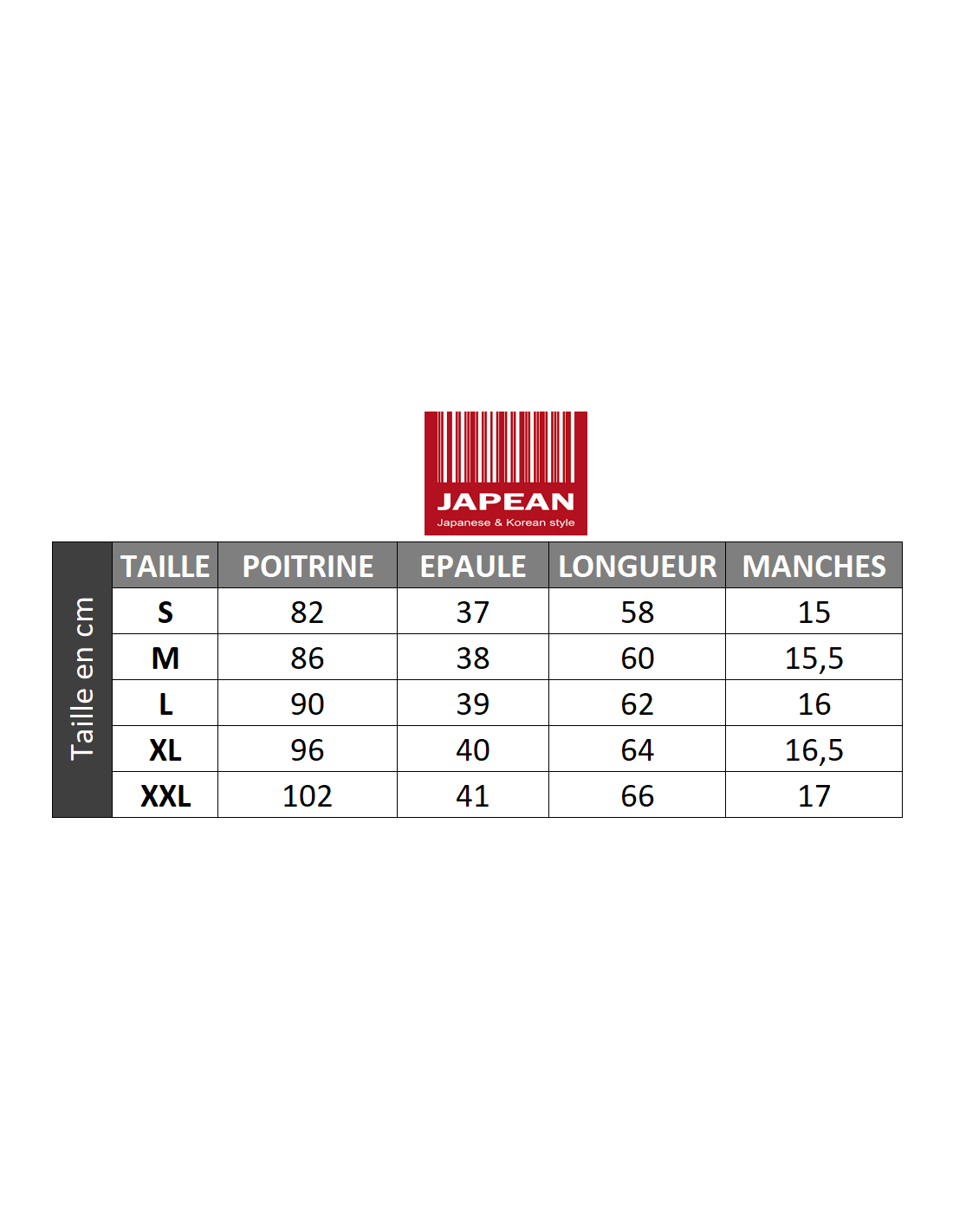 Conseil Japean : Les mensurations sont indiquées dans la galerie d'image