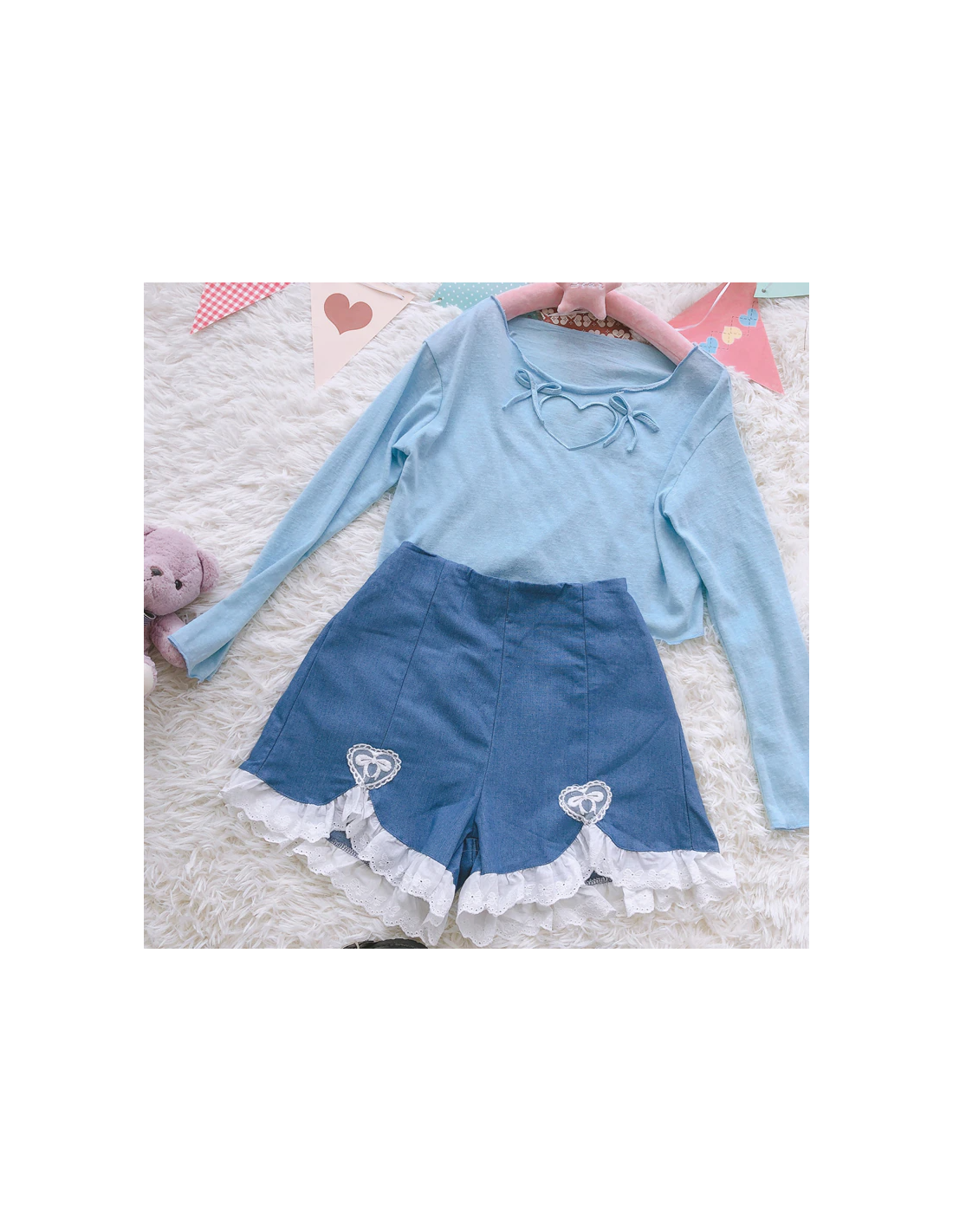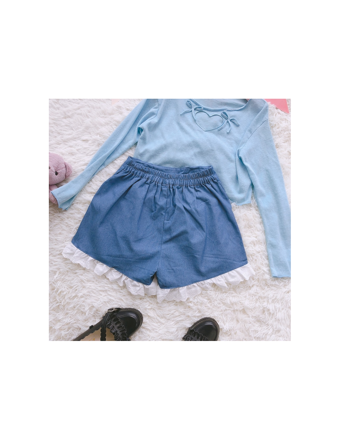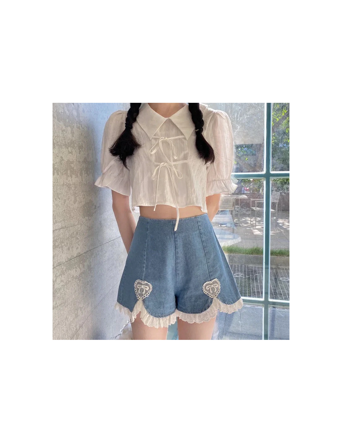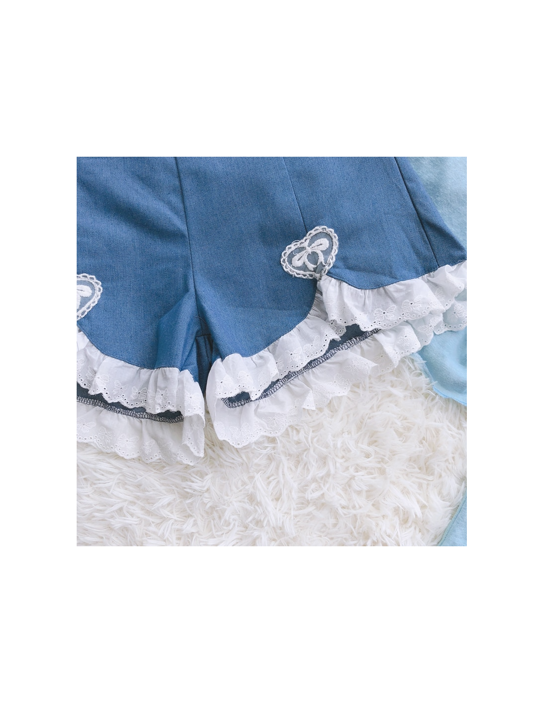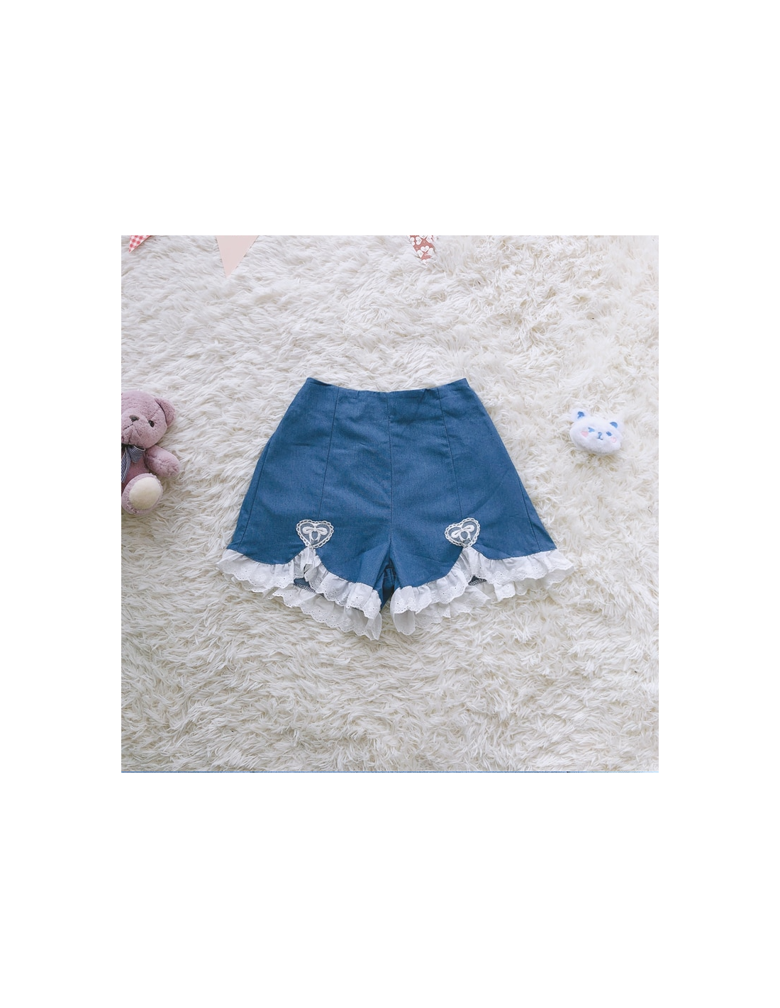Short léger à la taille élastique. Très élégant grâce à la dentelle et au coeur brodés