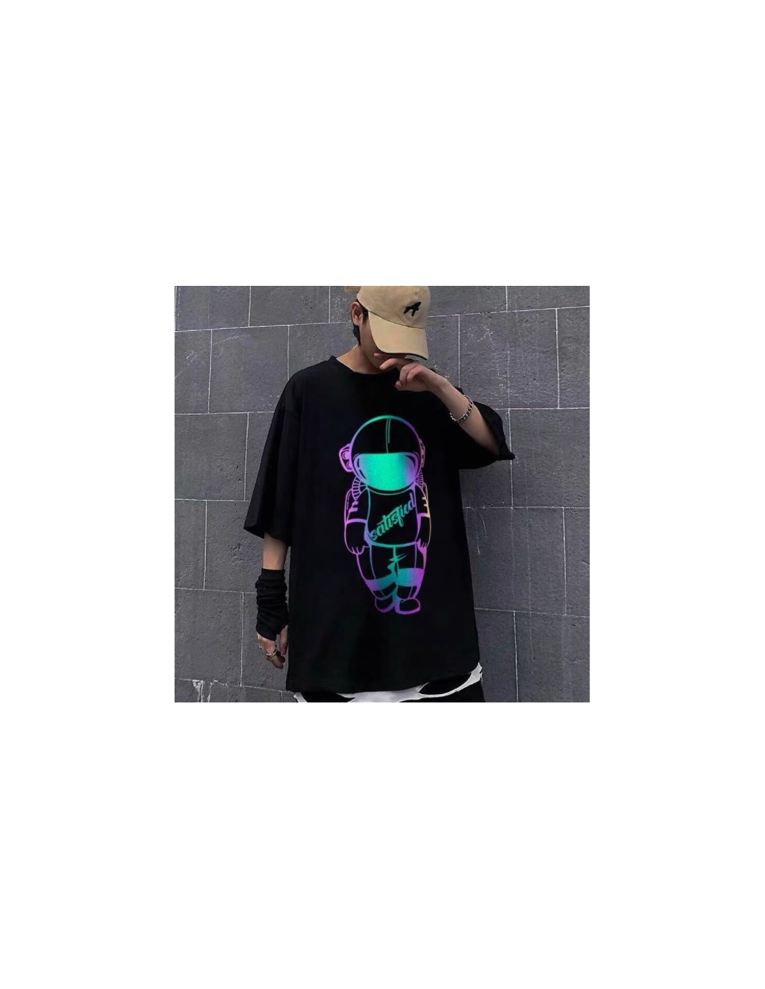 T-shirt noir imprimé astronaute.