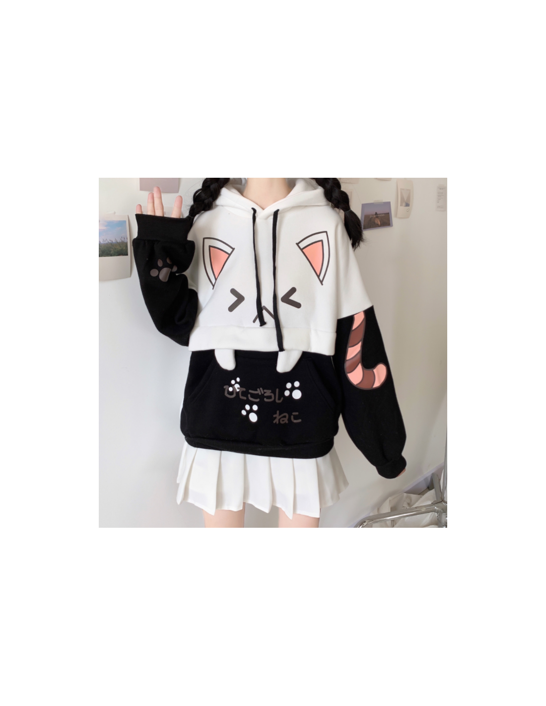 Sweat-shirt à capuche épais hyper confortable trop mignon avec ces détails imprimés chats