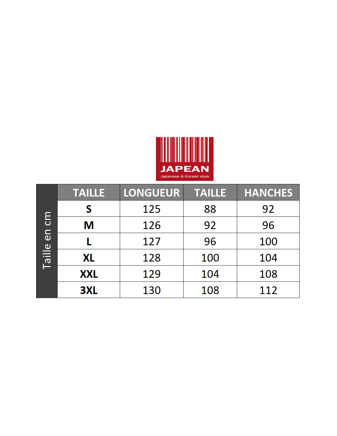Conseil Japean: Les mensurations sont indiquées dans la galerie d'image !