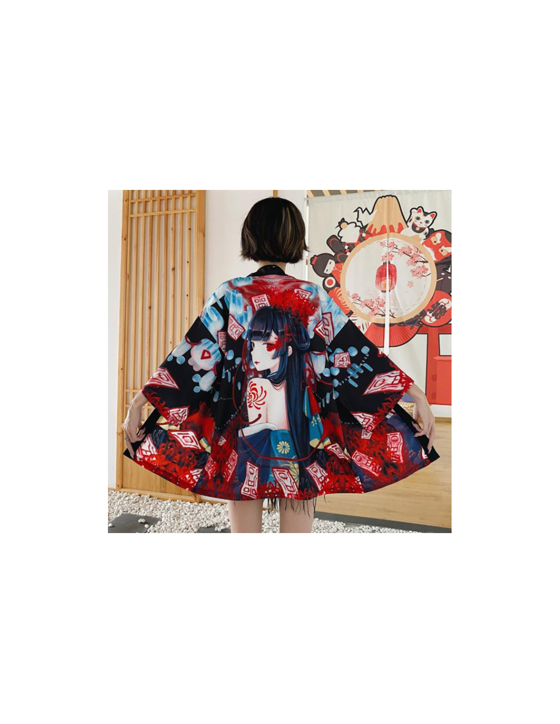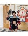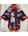 Le Kimono Yukata Wakai est une pièce forte au visuel affirmé, conçue pour celles qui recherchent une surcouche marquante tout en restant facile à porter. Son fond sombre met en valeur des contrastes rouge et bleu intenses, tandis que l’illustration au dos apporte une vraie présence visuelle sans alourdir la silhouette.