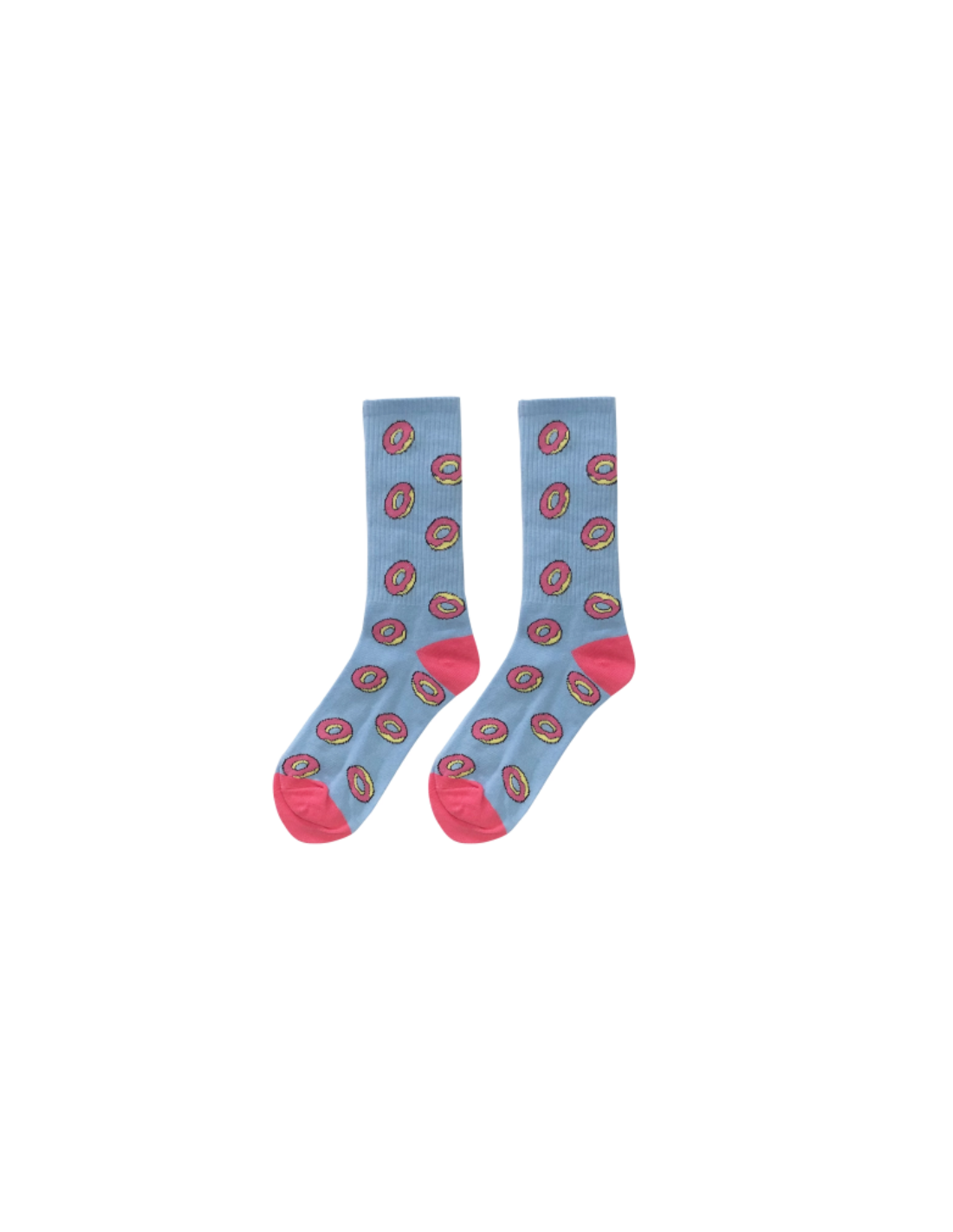 Chaussette mixte originale couleur bleu ciel et avec des donuts roses imprimés