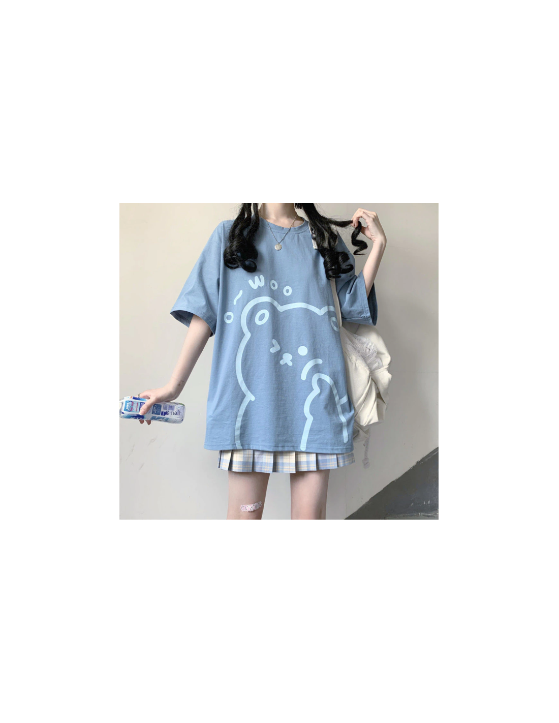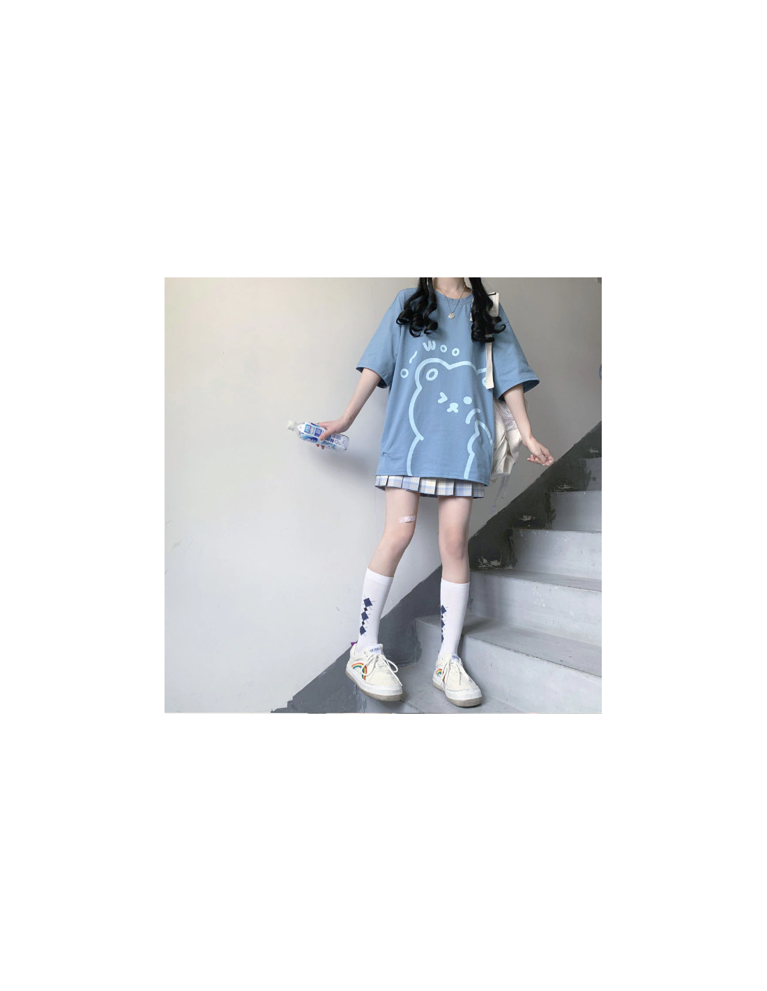 Jolie t-shirt ample bleu ciel avec ourson trop mignon imprimé