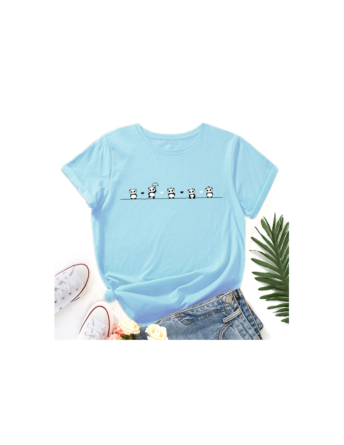T-shirt bleu ciel à manches courtes imprimé petit panda trop kawaii