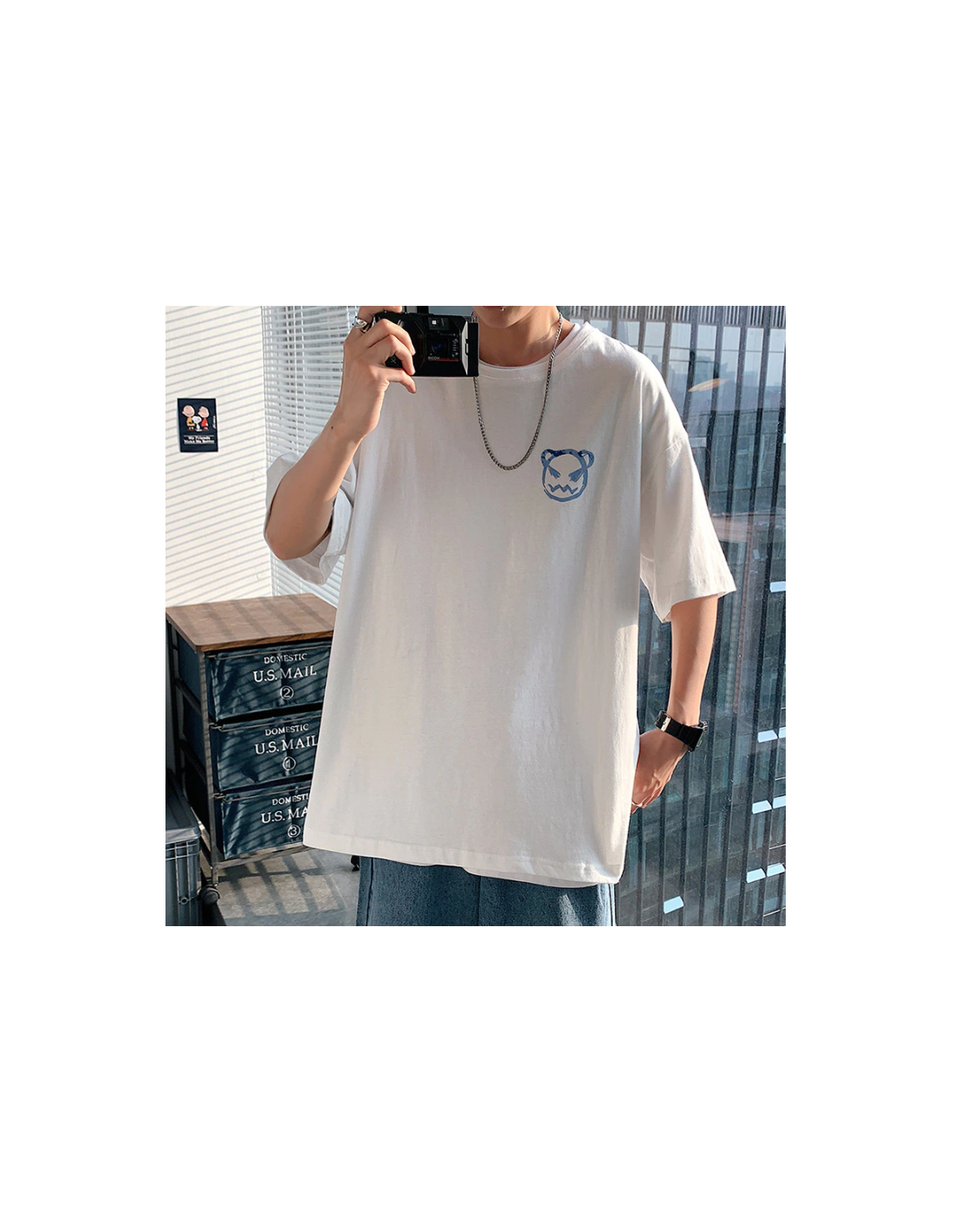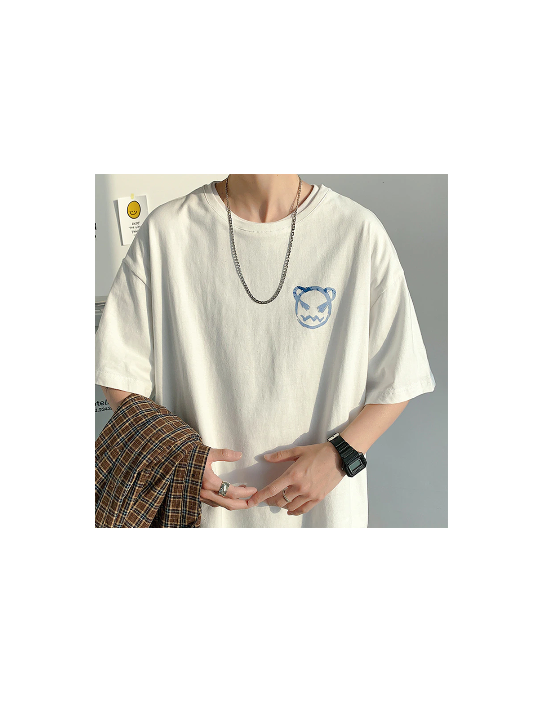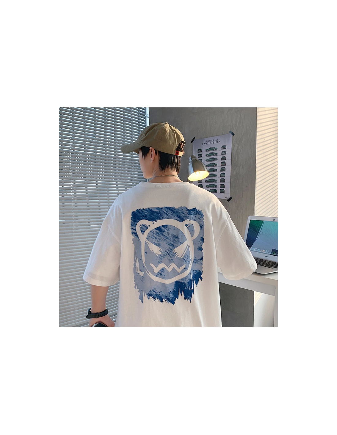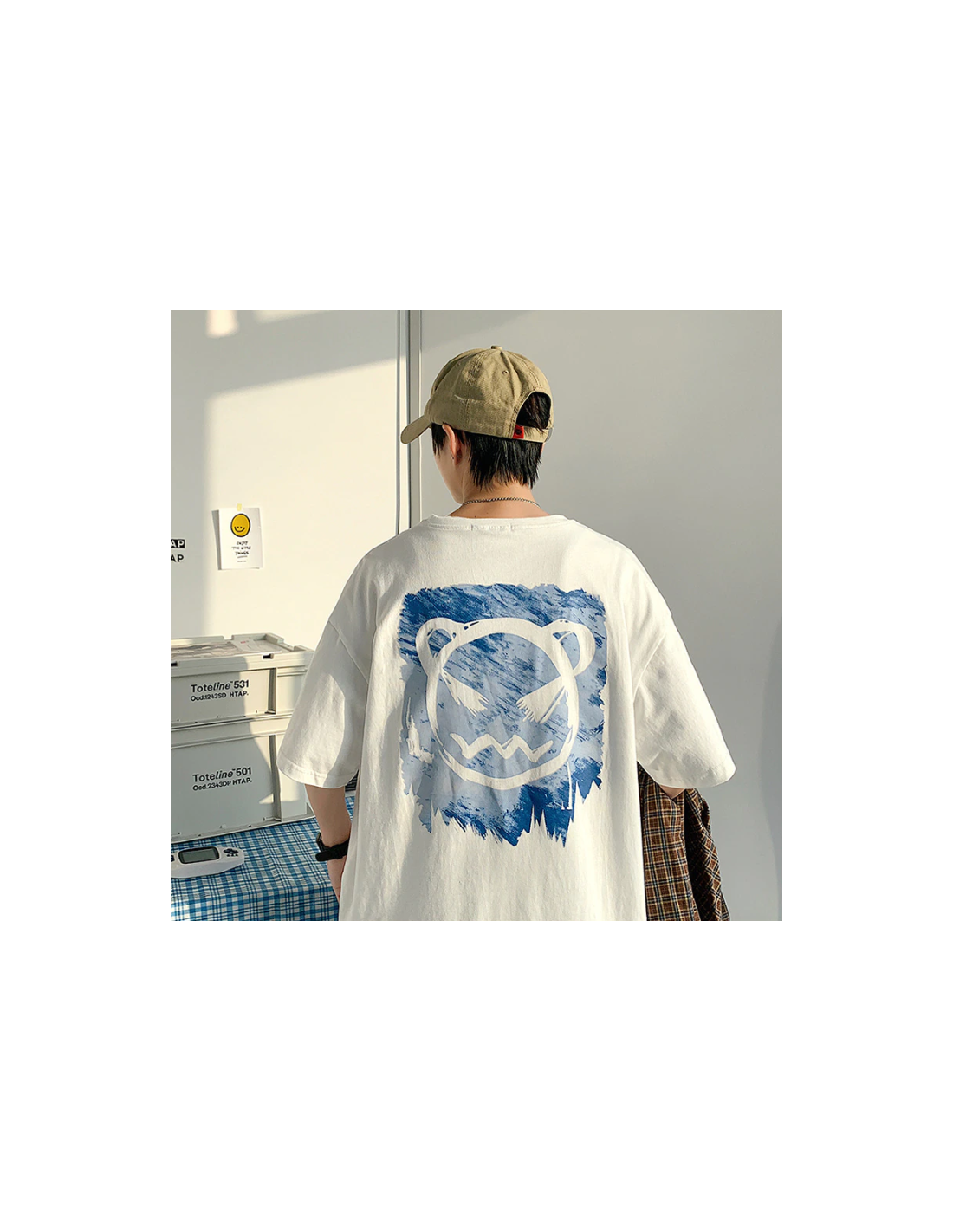 T-shirt streewear blanc avec visage ourson furieux imprimé dans le dos